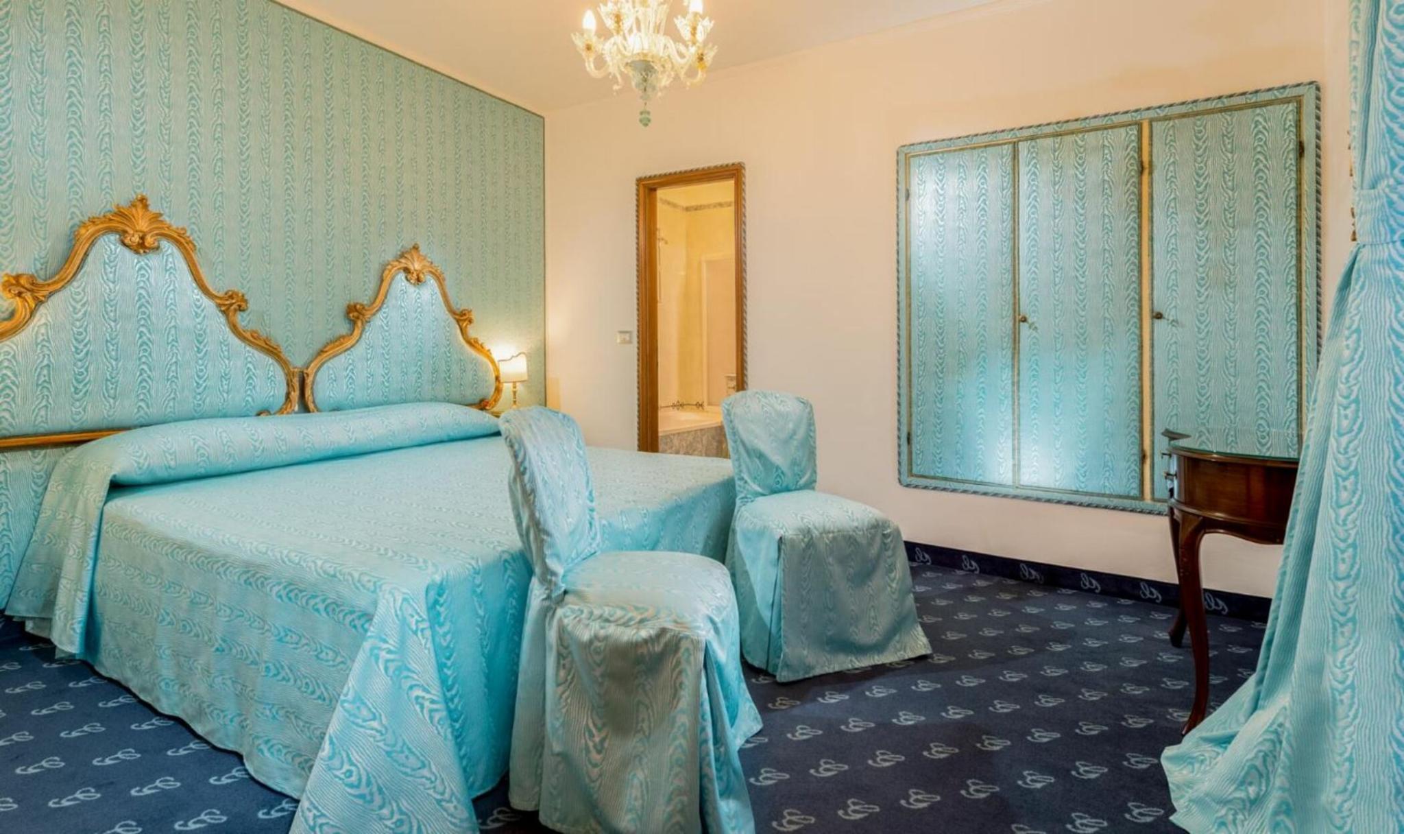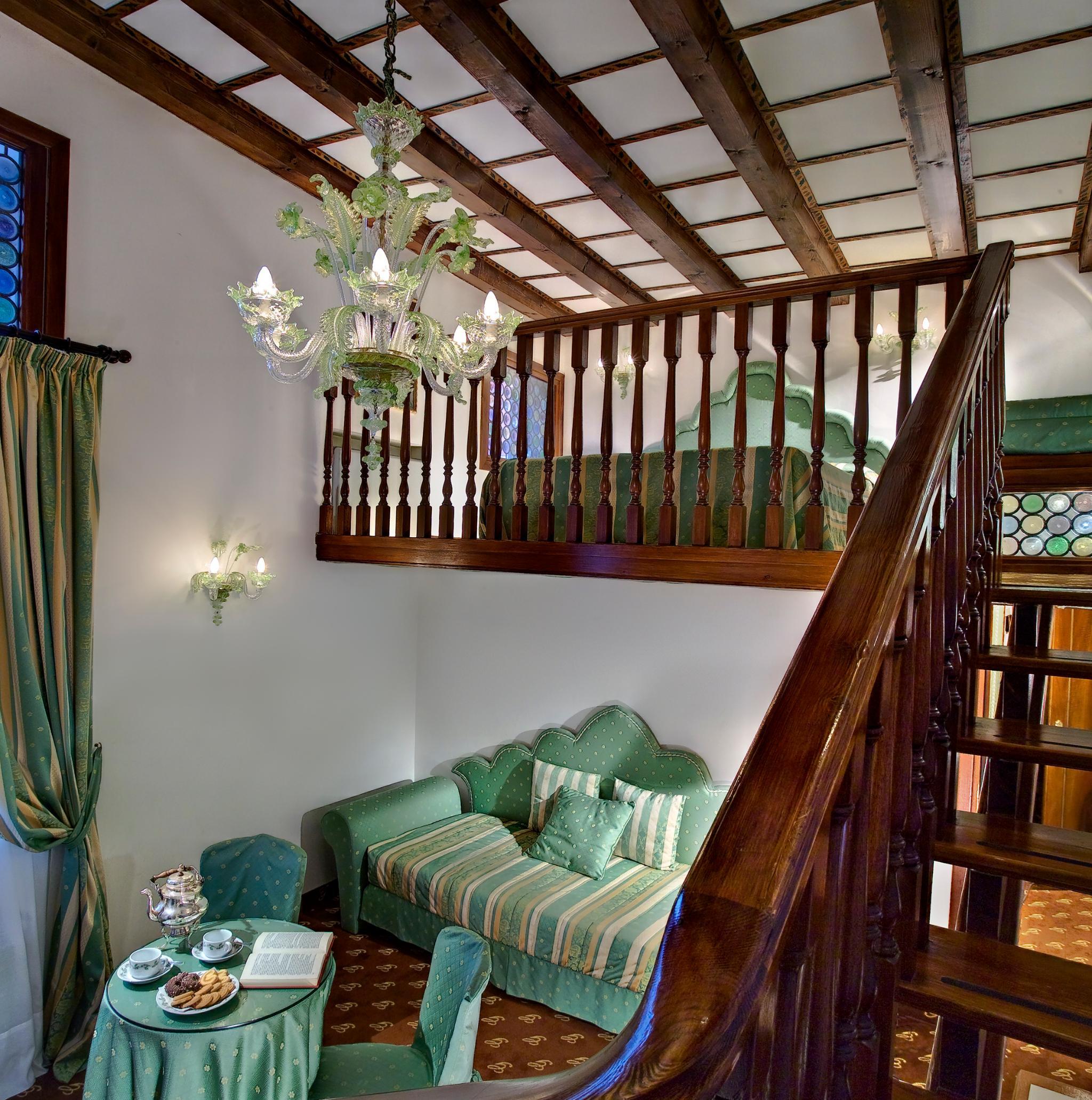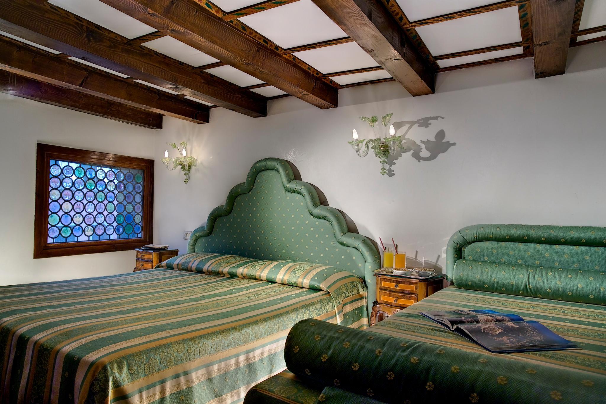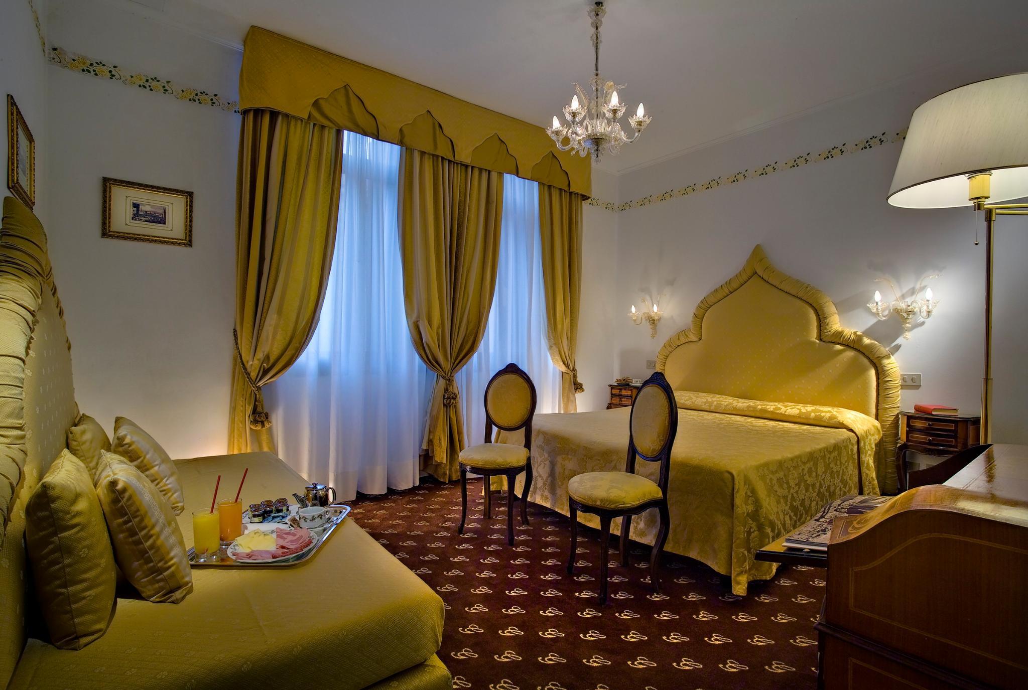 The hotel is decorated in a classic Venetian style with Murano glass chandeliers, and features a beautiful interior courtyard with a fountain, the perfect spot to have a late breakfast or a romantic candlelight dinner.