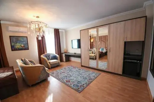 Spend an evening in a nice atmosphere of the bar. You can stop by the restaurant. Free Wi-Fi on the territory will help you to stay on-line. Specially for tourists who travel by car, there’s a parking zone..The following services are also available for the guests: a massage room and a sauna. Sports fans are going to love a fitness center. Get ready for a fun and exciting vacation! Here’s what you will find on the premises: a barbeque area. Tourists who can’t live without swimming will appreciate a pool..You can arrange a business meeting, a board meeting, and even a job interview as there is a business center. For the free movement around the city, the hotel offers a transfer for you. Accessibility: there is an elevator/lift. There are other services available for the guests of the hotel. For example, a laundry, dry cleaning and a safe-deposit box.