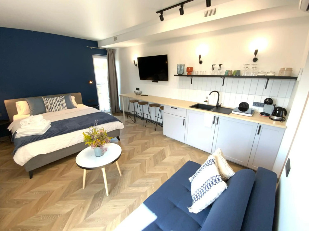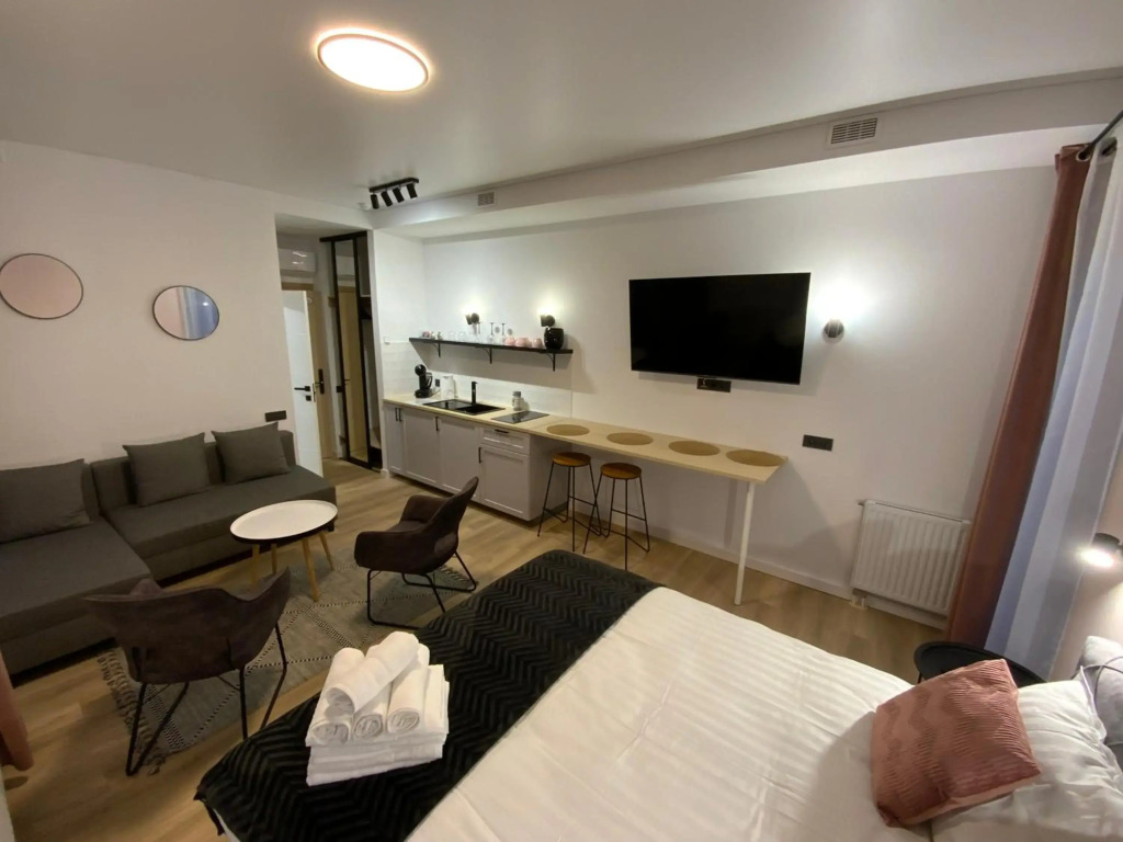 A perfect fit for a big group of travellers: apartment «Salt Garden Apartments» is located in Druskininkai. This apartment is located in walking distance from the city center. You can take a walk and explore the neighbourhood area of the apartment — Zhilibers Park, Saint Francis Xavier Cathedral and Kalozha Church.