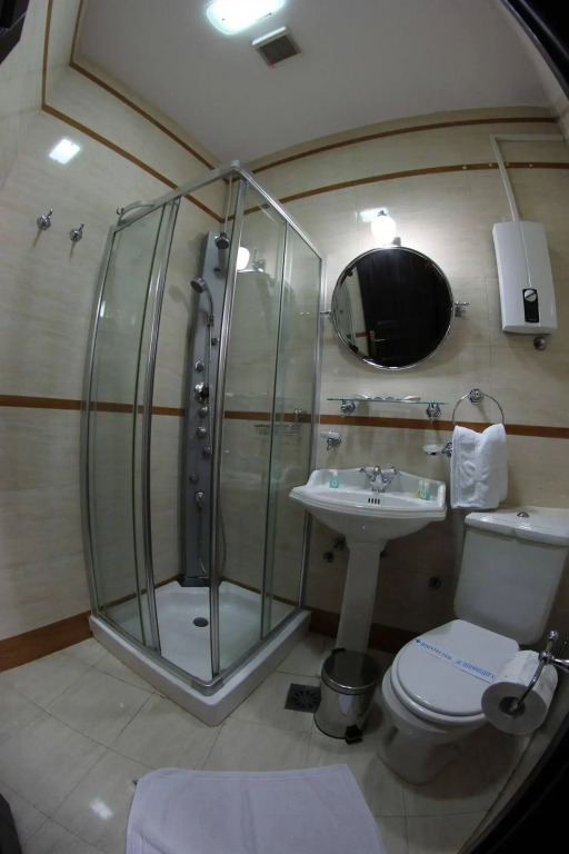 In the room, for you, there is a shower, a TV and a mini-bar. The room equipment depends on its category.