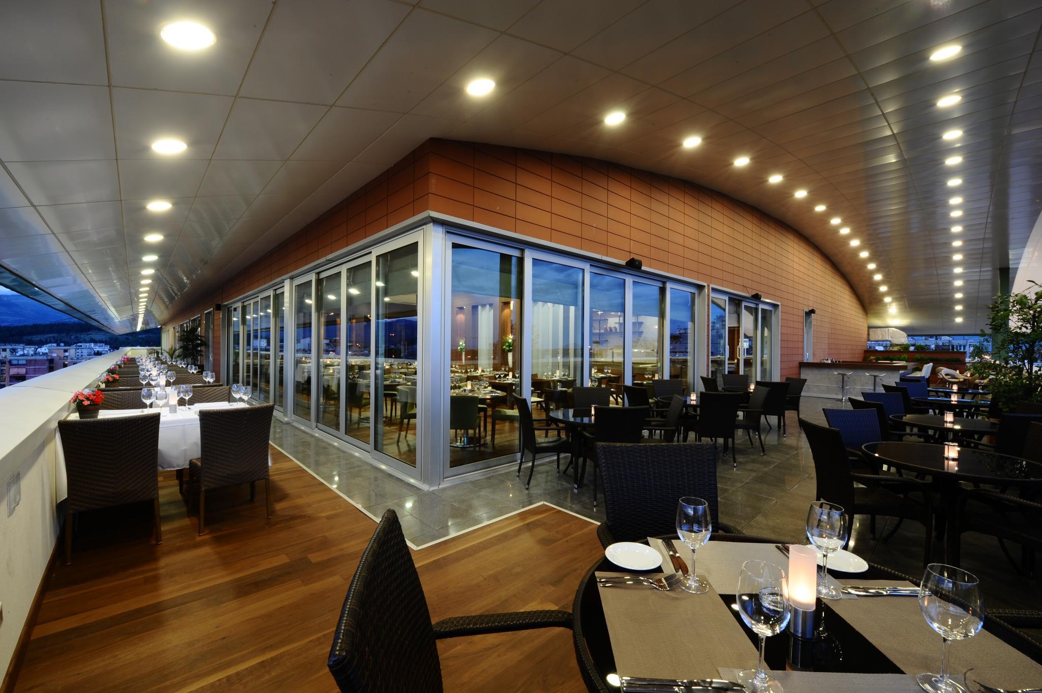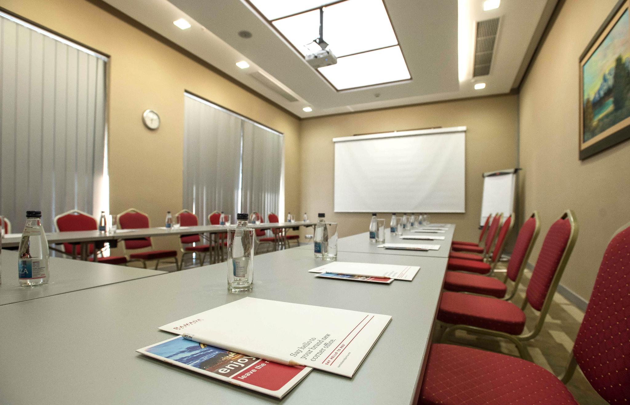 Situated in the heart of the city, the Ramada Podgorica hotel is a three-minute drive from the city centre and a five-minute stroll from the lush riverside. The hotel is adjacent to the Mall of Montenegro and only 15 minutes away from the Podgorica International airport. The hotel features 110 of the citys largest and most elegant guestrooms including 64 standard rooms, 32 deluxe rooms, 4 Junior Suites, 2 Garden Suites and 6 Grand Suites and one Diplomatic Suite. All rooms offer individually controlled air conditioning, digital and analogue phone lines, voice-mail, cable/satellite TV, mini-bar, safe, hairdryer and shower/bath. All guestrooms are non-smoking. Ramada Podgorica offers rooms suitable for physically challenged. Check-in time is 14:00 and check-out time is noon. Services and facilities at this property include Dedicated Concierge Service, Underground secure parking, Room Service, Multilingual staff, Express Laundry, and same day dry cleaning, Fitness and Spa Centre, Business Centre, Travel Agency, Rental Car Agency, Limousine Service, Boutiques/Shops - Mall of Montenegro, Major credit cards accepted. Soko Gym Fitness Centre offers a full range of fitness equipment, steam rooms and saunas, as well as massage therapies. With over 550 m2 of conference and meeting space, Ramada Podgorica is the citys most sought after venue for conferences, meetings, incentives and celebrations. The Ballroom has high ceilings, square shaped and pillar-less, hosting up to 250 people, Two meeting rooms of various sizes for functions up to 45 participants, One boardroom hosting up to 12 participants for executive meetings, All meeting rooms have air conditioning system, Possible to organize simultaneous interpretation, Up to date audio-visual/multimedia technology, Internet connection/ISDN line in all meeting rooms and Banquet and Catering Services available for outside clients.