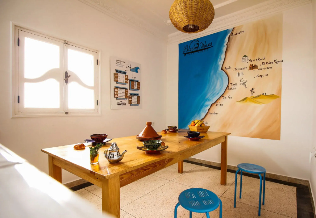 A great hotel to have a nice rest before long walks around the city. Hotel «Blue Waves Surf House» is located in Agadir. This hotel is located in 8 km from the city center.