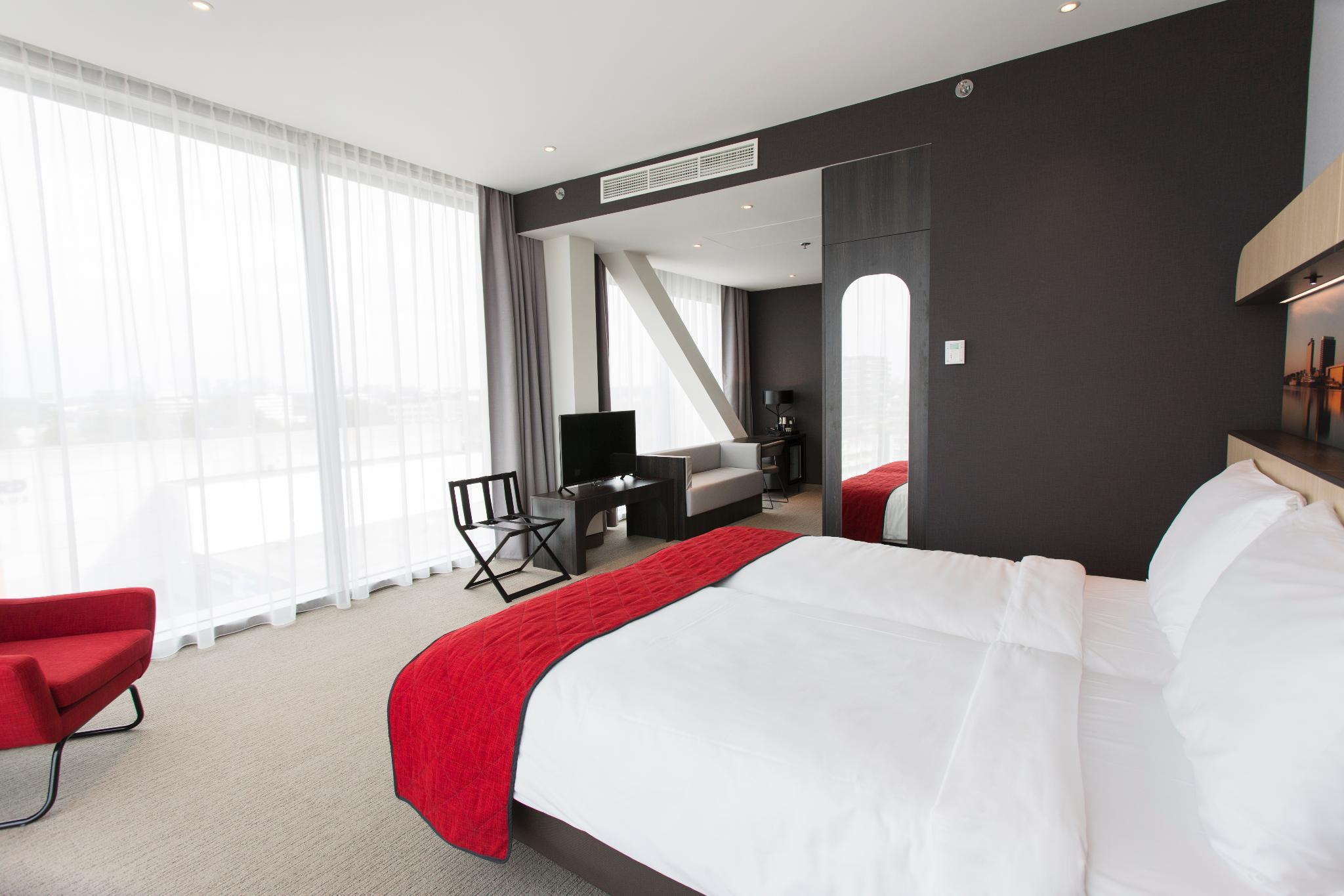 A unique hotel concept, located in Amsterdam Nieuw-West. It offers a highly comfortable stay for both business- and leisure travellers. It is a short drive away from the Vondel Park and the nearest station is Henk Sneevlietweg. From the hotel it is just 400 metres to the 'line 2' tram stop (public transport) and the Schiphol International Airport is less than 9 kilometres away. The hotel has a wide choice of health and wellness facilities where guests can recharge their batteries mentally and physically. From early in the morning until late at night, gusts can enjoy the very best of the Mediterranean kitchen and delicious gourmet burgers in the hotel restaurant. All guest rooms and suites are elegantly furnished and are equipped with a luxurious facilities.