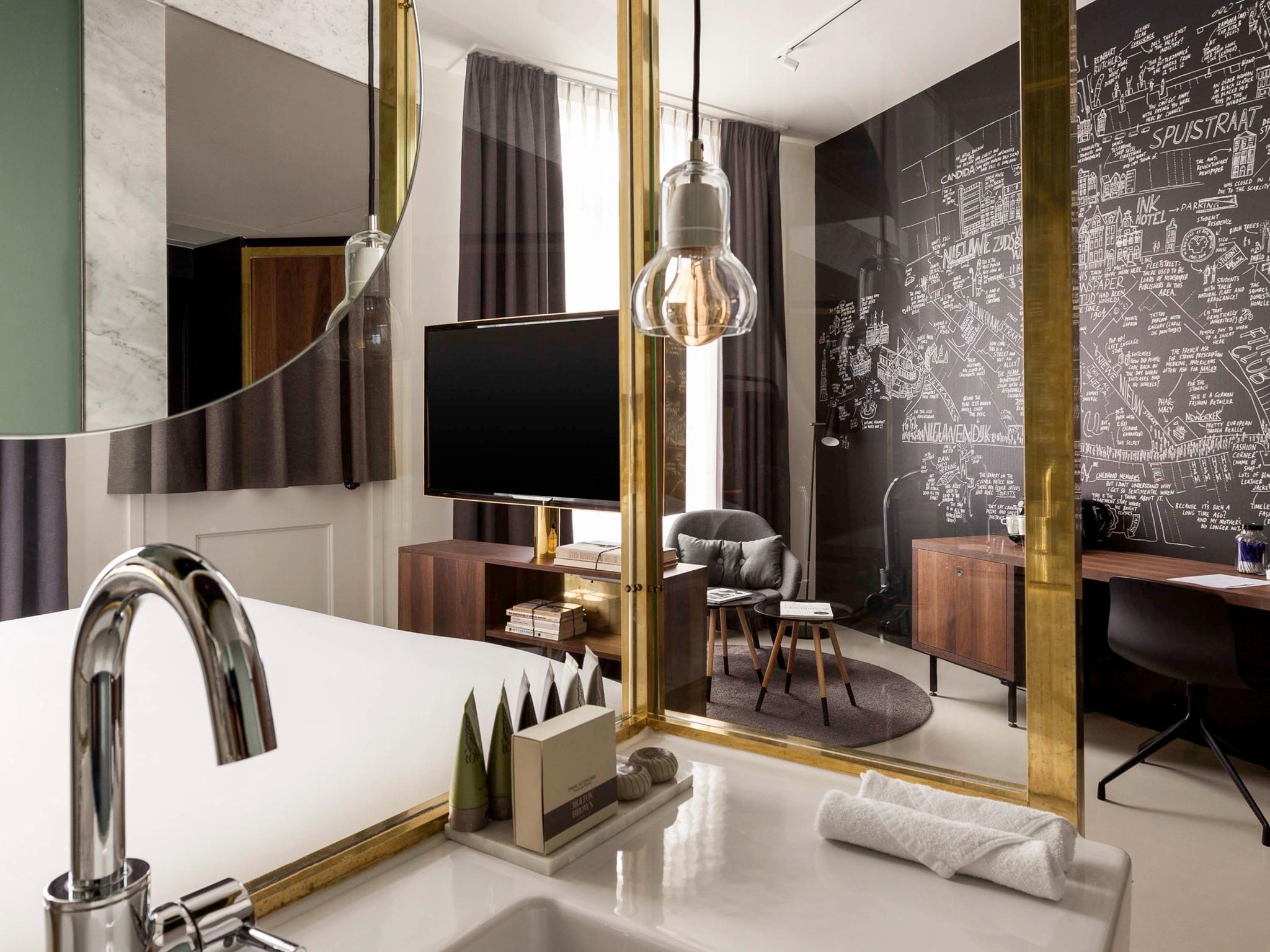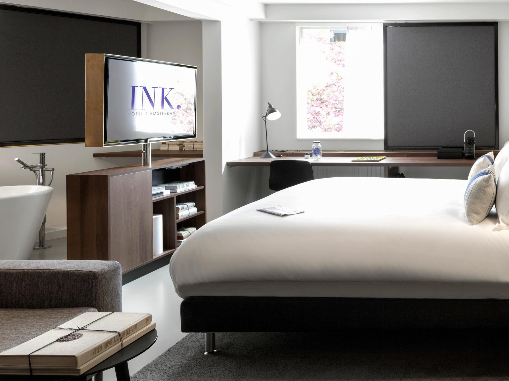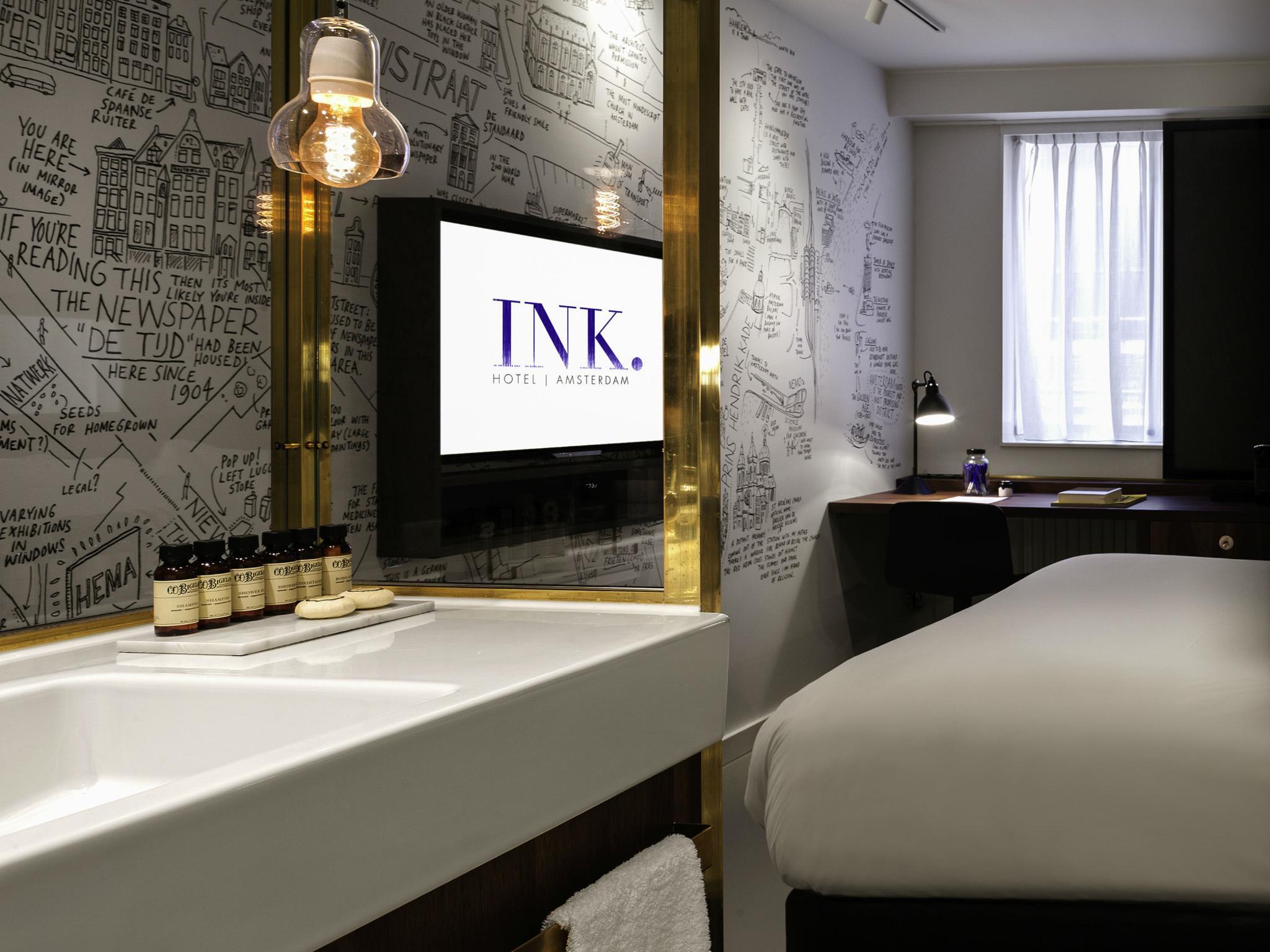 INK Hotel Amsterdam owes its name to the rich history of the building in which, as former home of the Dutch newspaper 'De Tijd', stories were conceived, written and brought to life in ink. INK Hotel is the place "where stories are yet to be written". INK Hotel Amsterdam is a luxury design hotel, where the traditional rules of hospitality are freely translated to the modern day, rewriting the definition of 'luxury'. Award winning, design located in the heart of Amsterdam.