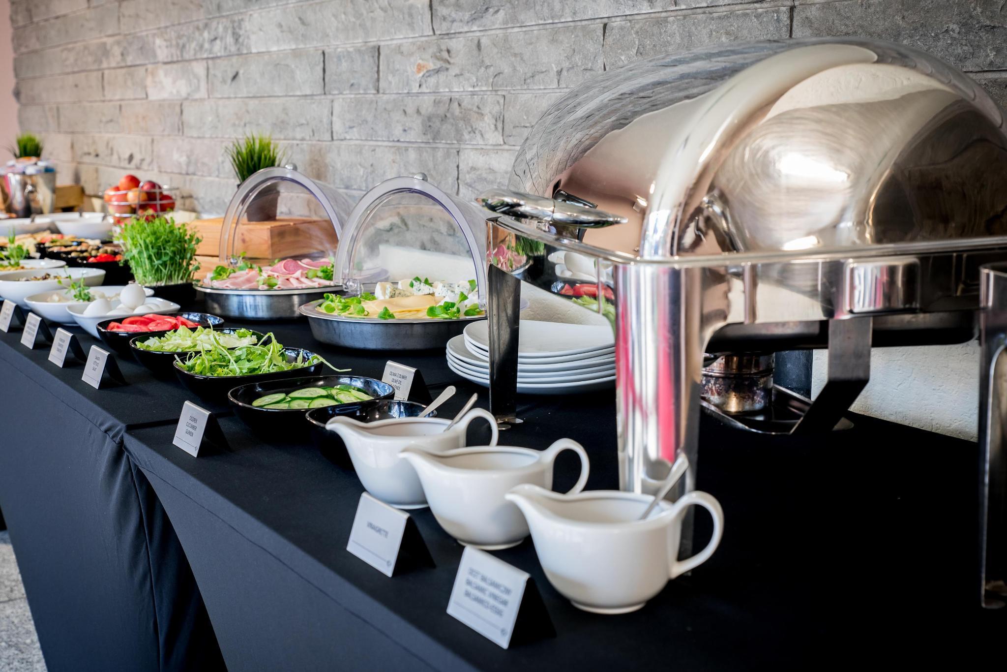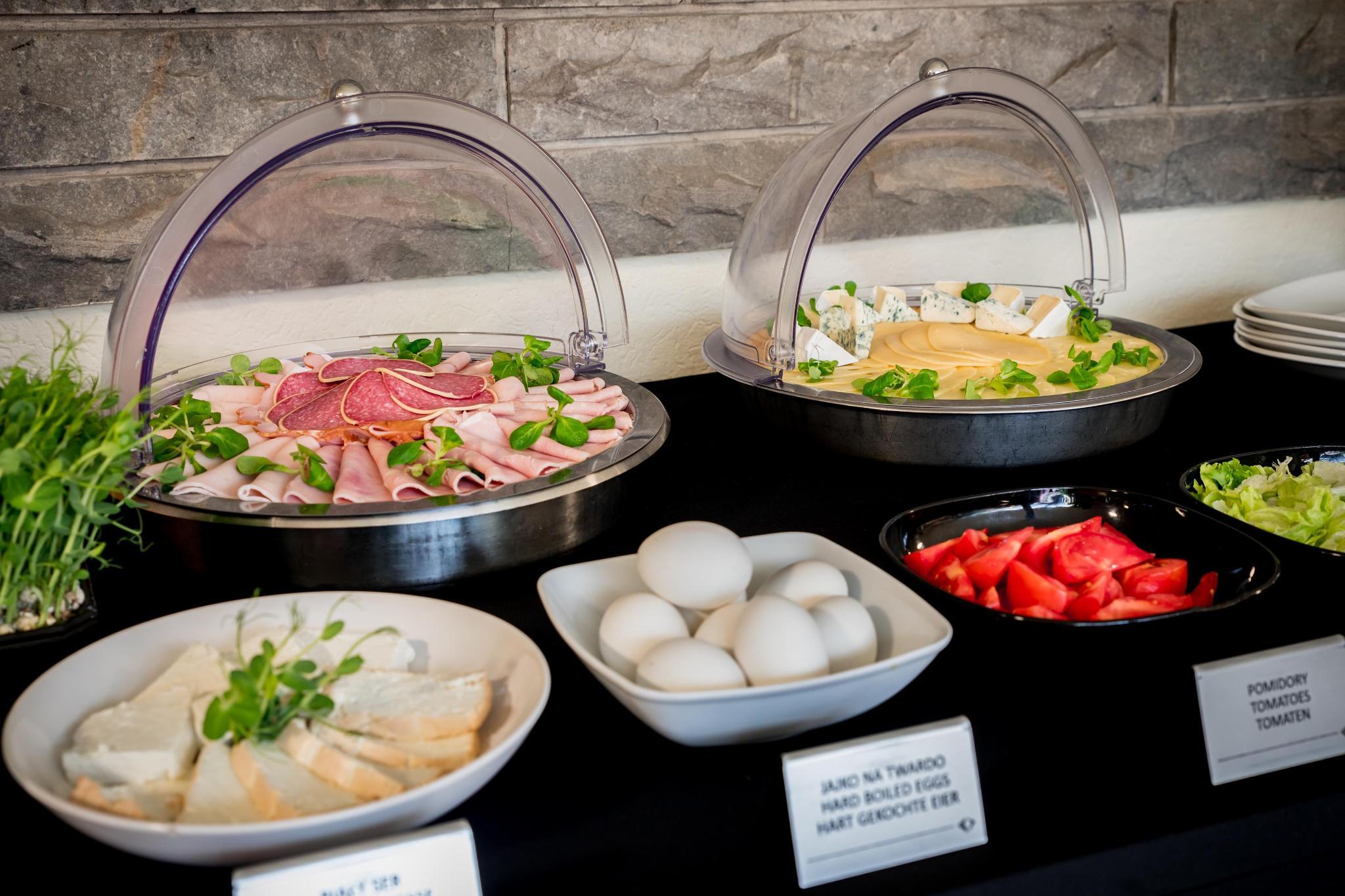 A breakfast buffet is served every morning at the hotel's restaurant.