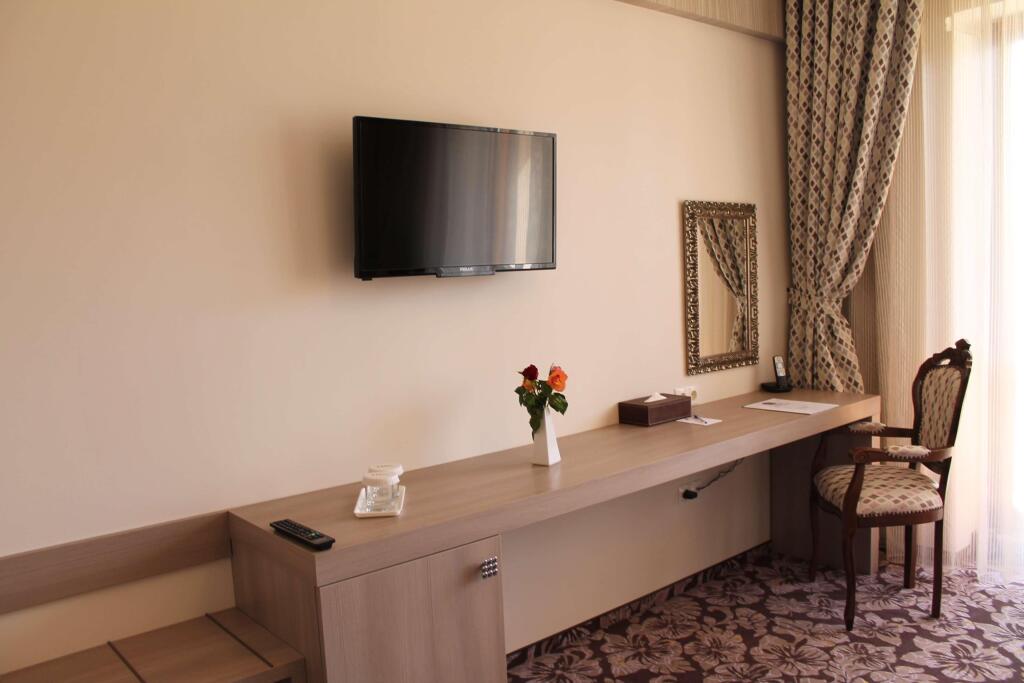 In the room, there is a shower, a TV, a mini-bar, a bathrobe and slippers. The room equipment depends on its category.