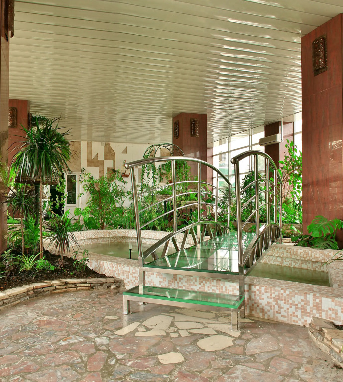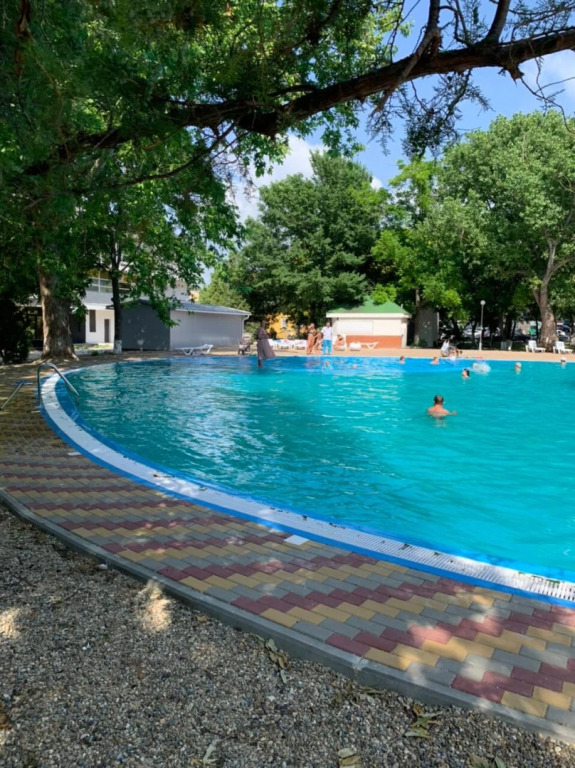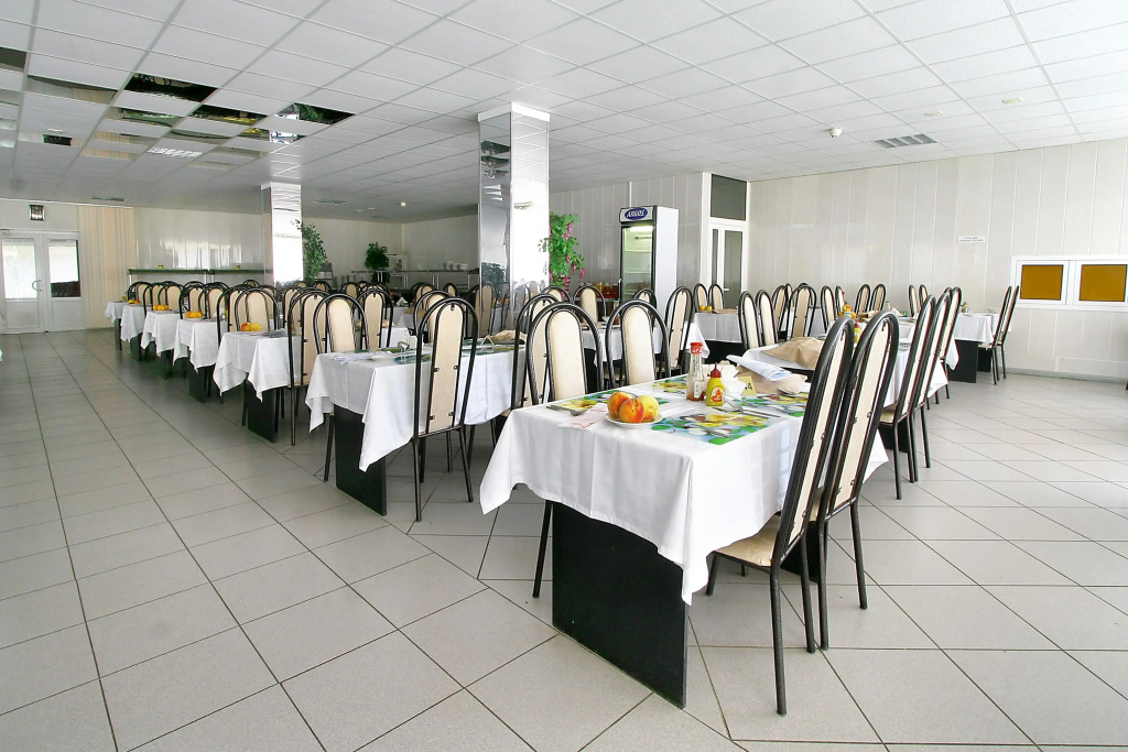 The sanatorium operates on an all-inclusive basis. The sanatorium has its own restaurant, which offers a selection of dishes and drinks according to the buffet system. The pool bar offers intermediate meals, as well as alcoholic and non-alcoholic drinks from Russian manufacturers, which are served throughout the day..The sanatorium has an outdoor swimming pool with an area of 520 sq. m with a children's area. The pool depth for adults is 1.55 m, the children's area is 60 cm deep..According to the schedule, a shuttle service is organized to the pebble beach with sun loungers, shade shelters, changing rooms, toilet, shower, medical and rescue post..Daytime and evening animation is provided for the leisure of guests of any age. For adults: water aerobics, water polo, discos and show programs. For children: workshops, mini discos, an outdoor playground and a children's room with a tutor..There is wireless Wi-Fi access throughout the sanatorium.