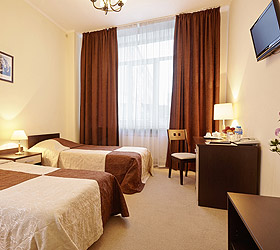 Vladimirskaya Hotel is situated in a quiet neighborhood of Belgorod city centre, far from noisy streets. This location ensures that nothing will disturb hotel guests from value recreation. Every district of the city is easily accessible from the hotel. Accommodation is provided in 32 modern and comfortable rooms of various categories - Triple and Quadruple Economy rooms, Single and Double Standard rooms, Junior Suite and Suite rooms. Non-smoking rooms are available. Each room includes a TV set, a cool mini bar, a telephone and nice carpeting. Hotel bathrooms feature independent hot water supply and include shower units, hair-dryer, towel sets and cosmetic kits (shampoo, soap, shower gel, shower cap, etc.). Suite rooms' bathrooms also include terry robes and slippers. The cozy hotel cafe welcomes guests for breakfast, lunch and dinner. Services and facilities provided by Vladimirskaya Hotel include - registration of foreign citizens; iron, ironing board, hair-dryer, electric kettle - on demand; deposit safe boxes; taxi call; meeting room; office services; laundry service; massage parlor. Hotel grounds accommodate a parking lot. The whole territory has Wi-Fi Internet coverage.