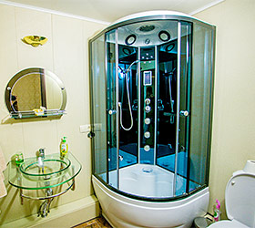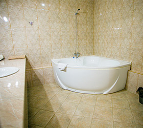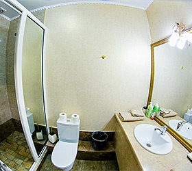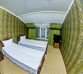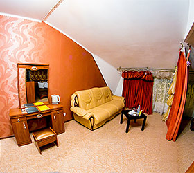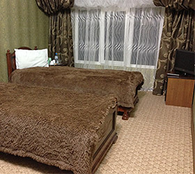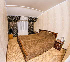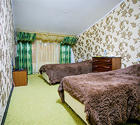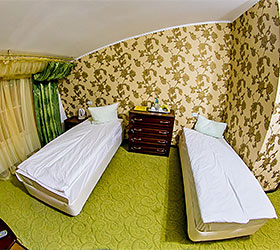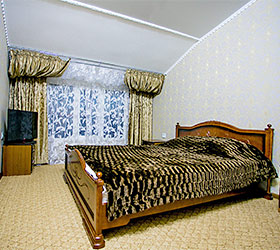 Accommodation is available in 18 rooms of different categories, featuring everything required for fruitful work and enjoyable stay. The guest house offers 4 Standard rooms, 11 Junior Suites and 3 Suites, including one with a sauna, living room and fully equipped kitchen. Each room has two separate beds or one double bed, bedside tables, chest of drawers, wardrobe, TV, and electric kettle. Bathrooms are complete with modern fitment, shower cubicles, towels, and personal toiletries.