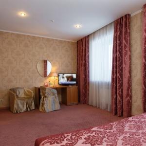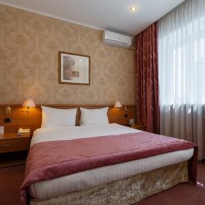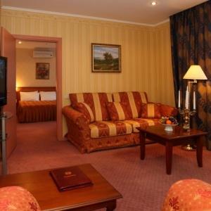 The hotel offers accommodation in comfortable rooms of different categories including 22 Standard and De Luxe rooms, 12 Suite Superior rooms and 2 Suite VIP rooms. All rooms are equipped with air-conditioning systems, telephones, TV-sets with 19 satellite channels, minibars, individual safes. Bathrooms of Suite Superior and Suite VIP rooms feature jacuzzi. At guests' service are: Wi-Fi Internet access, up-to-date security system, 24-hour room-service.