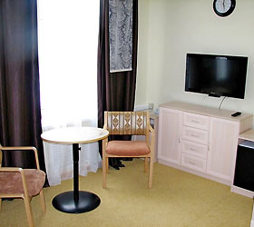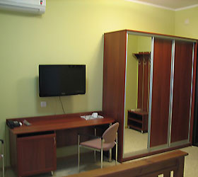 The hotel offers comfortable rooms that meet high quality hotel standards. The hotel contains 16 one person rooms. The bathroom includes a shower, toilet, hair dryer, bath robe, slippers, and hygiene products. All rooms have Wi-Fi, a telephone, and air-conditioners. A cooler with drinking water is located on each floor of the hotel.