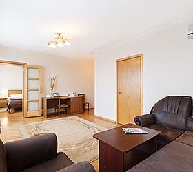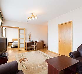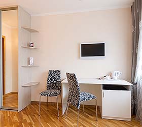 Hotel services: conference room, cafe, Wi-Fi, mini-bar, laundry service, safety deposit box, taxi service, registration of foreign citizens, making photocopies of documents, booking and sale of tickets, luggage storage, parking, souvenir shop, baby cot for children under 3 years.