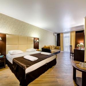 Azaria Hotel offers comfortable and stylish design rooms. We have prepared everything you need for your holiday: a bathroom, toiletries, slippers, TV, air conditioning, fast Wi-Fi. Here you can enjoy relaxation and silence.