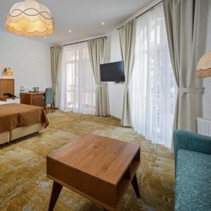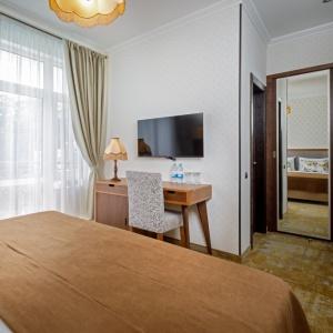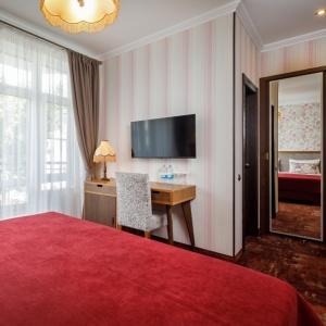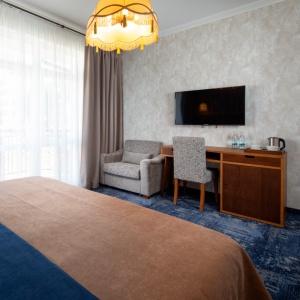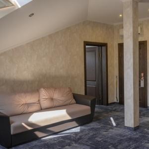 Good location, closed, secluded territory of the complex and the proximity of the sea allow you to make the rest of the guests homely and comfortable. The hotel complex is of the 4* category and consists of two buildings with four floors each, equipped with a ramp and an elevator, the number of rooms is 89. "Dacha" offers guests nine options of rooms with author's interiors with a capacity of one to six people.