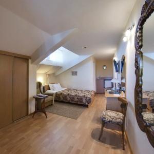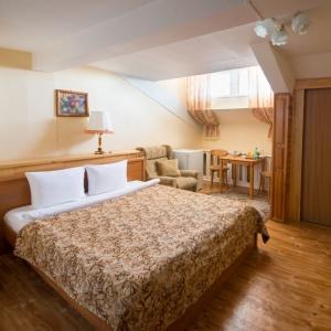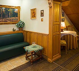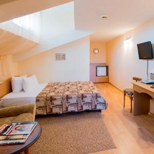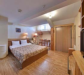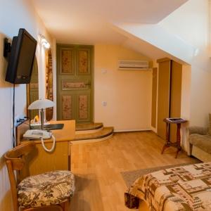 Okolitsa Hotel provides accommodation in 10 Single and Double rooms of Standard, Junior Suite and Suite categories. Hotel rooms feature everything needed for pleasant and comfortable residence - cozy furniture, a bathroom equipped with shower unit, a telephone, a refrigerator, satellite TV, air conditioning, hair-dryer.