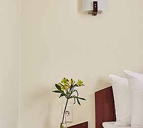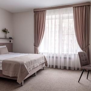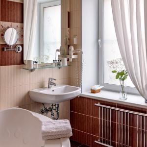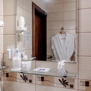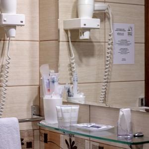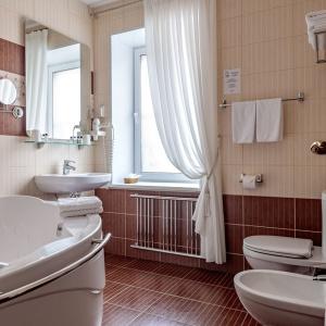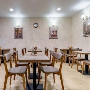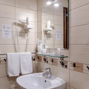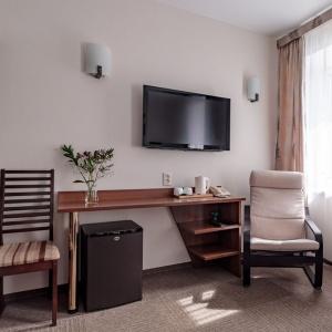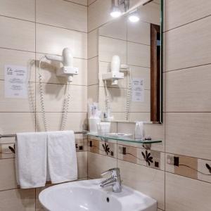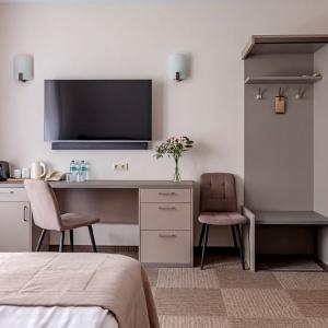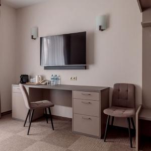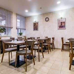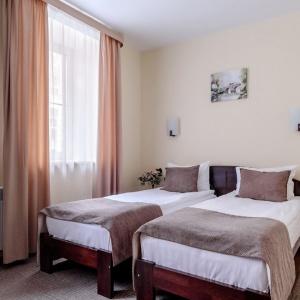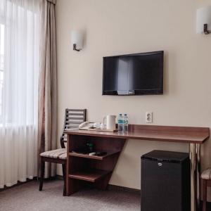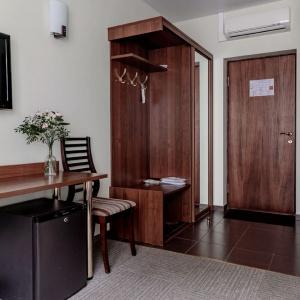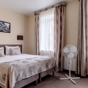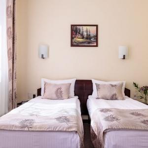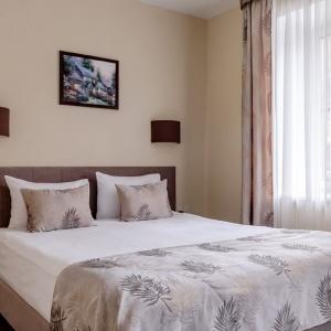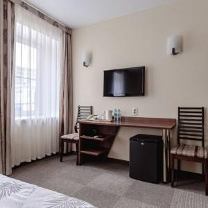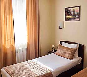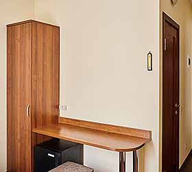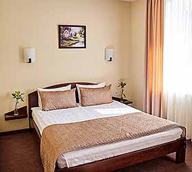 The hotel offers accommodation in rooms of Economy, Standard, and Comfort categories. A Standard room includes one double-bed or two separate beds, bedside tables, LCD TV, fridge, telephone, and Wi-Fi Internet access. The bathroom is fitted with shower cubicle, hair-dryer, set of towels, and toiletry accessories.