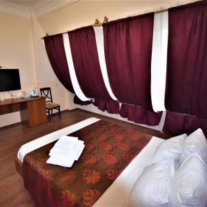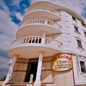 Hospitable, modern, colonial, with a light touch of Italy, Hotel Via Sacra invites you to have a great time in the atmosphere of European comfort and pleasure in sunny Krasnodar. Located within walking distance from the main attractions of the capital of the Kuban, the hotel is represented by a monumental four-story building with white columns, reminiscent of the times of Romulus and Titus Tatsia. Classical architecture and exquisite decoration help each guest get in touch with the legendary history of Rome, while a subtle combination of the past and the future in the interior is intertwined with all the comforts of modern technology. The hotel is located a 15-minute drive from the Red Square shopping center and a 20-minute drive from the railway station.