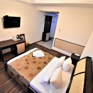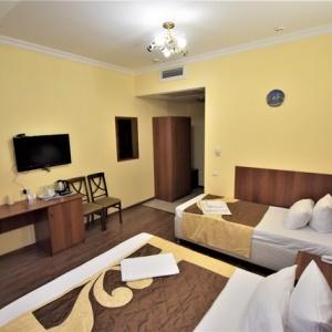 The hotel's interior is decorated in a colonial style, and the color palette is expressed in warm, terracotta, sand and brown colors. Sometimes in the design of rooms and public areas, you can find a bright palette. Colonial style is perfect for people who travel often and love adventure. It combines features of different styles. Borrowing some elements of decor in other countries, the style has absorbed the original flavor and atmosphere that can relax and win over any of our guests to rest. Although this style originated a long time ago, today it has not lost its relevance. The hotel is closely intertwined with European luxury and charm. And special attention is paid to functional features and their improvement.