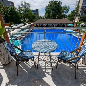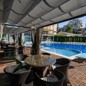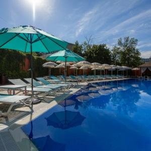 A wonderful sauna with two swimming pools and a Turkish bath are at the guests' disposal; guarded parking for personal cars of hotel visitors.