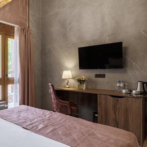 The rooms have a private bathroom, a desk and a flat-screen TV. Towels and bed linen are provided. Tea facilities, bottled water, bathrobes and slippers are standard in every room.