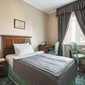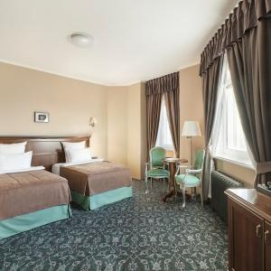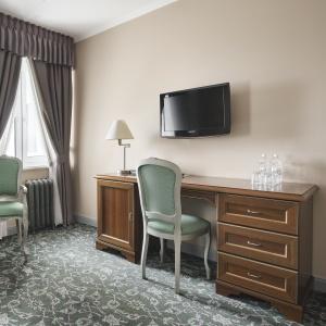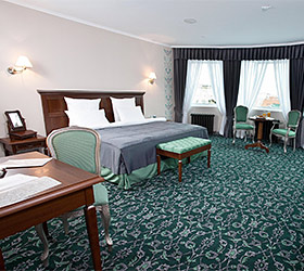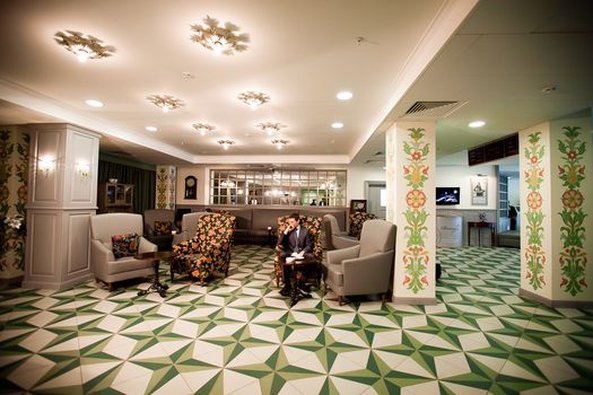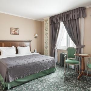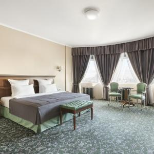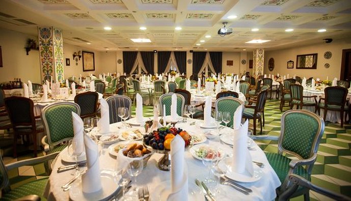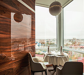 The Remezov Hotel in Tyumen is a conceptual Siberia hotel designed in Russian traditions. The interiors open up the history of Siberia, Tobolsk province and Tymen development. The decorations include the elements that show the heritage of Semen Remezov - images of maps and draft books, painted columns and ceilings with patterns from his travel notes. The hotel is located in the administrative, historical and culture centre, out of vibrant highways and streets. This guarantees guests a full rest and sleep. A new convenient road-crossing in the hotel suburbs excludes the traffic-jam possibility and allows plan the transfer from the hotel to the airport. The Tsetnoy boulevard, Administration, the library, Philharmonic Hall and other sights are in walking distance from the hotel. The Remezov hotel offers 111 modern comfortable rooms designed in aristocratic style. Rooms of various categories are located from the 4th to 14th floors. The level of comfort in such room categories as "Tsarsky" and "Kupechesky" includes the following amenities as a WI-FI, a safe, a satellite TV, a climate control system, a orthopedic bed, a hypoallergic bed linen, heated floors in bathrooms and toilet accessorizes, a 24-hour room-service. Breakfasts, traditional Russian tea-time in the restaurant Restoratsiya Remezov, tea and coffee sets, wellness-centre (a sauna and a swimming pool) services, a Wi-Fi in rooms and on the whole hotel zone are available for guests. A 24-hour business centre is also at business guests' service. The Remezov hotel has conference-halls and meeting rooms with total square from 25 to 190 sq.m, located on the separated conference hall with vast hall (206 sq.m) for coffee-breaks and fourchettes. Each event is supervised by the conference-manager. The hotel has 2 restaurants with exquisite cuisine. The restaurant Restoratsiya Remezov offers guests a wide choice of traditional Russian and European dishes. Additionally business-lunch menu is offered to the main menu in the afternoon. The restaurant is available for 24 hours. The "Remezov" restaurant with unique menu and panoramic view on the city from the 14th floor is a panoramic restaurant of Tyumen. Open terrace works in warm season.