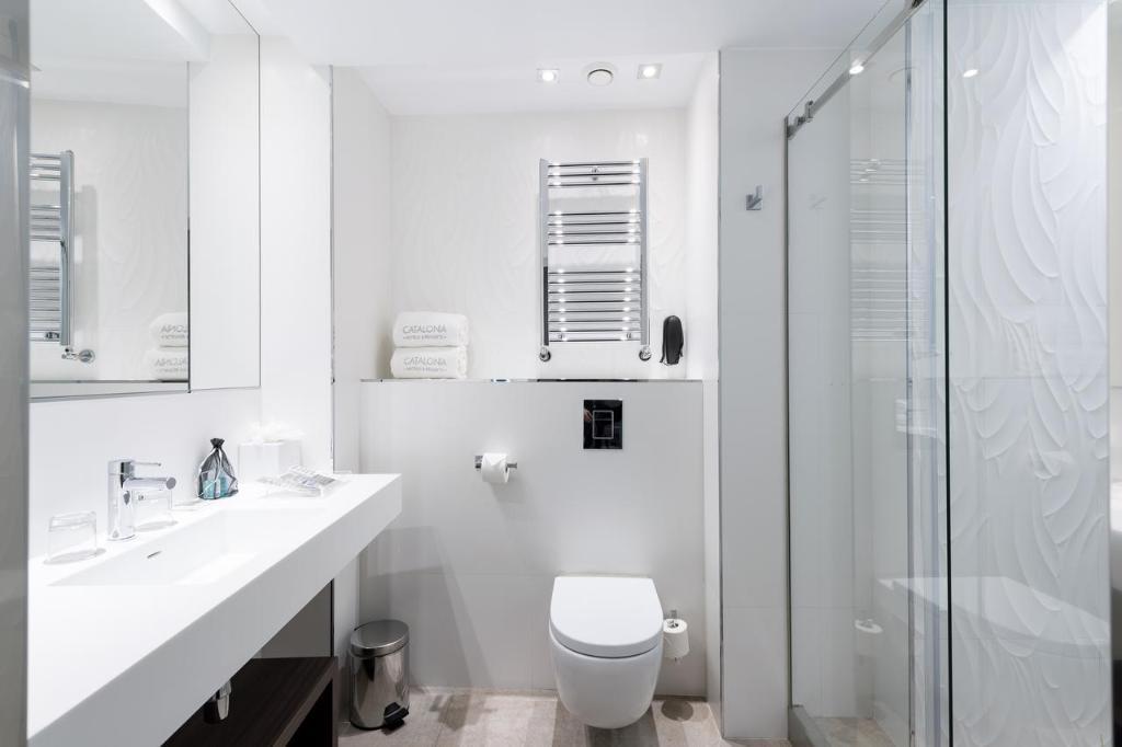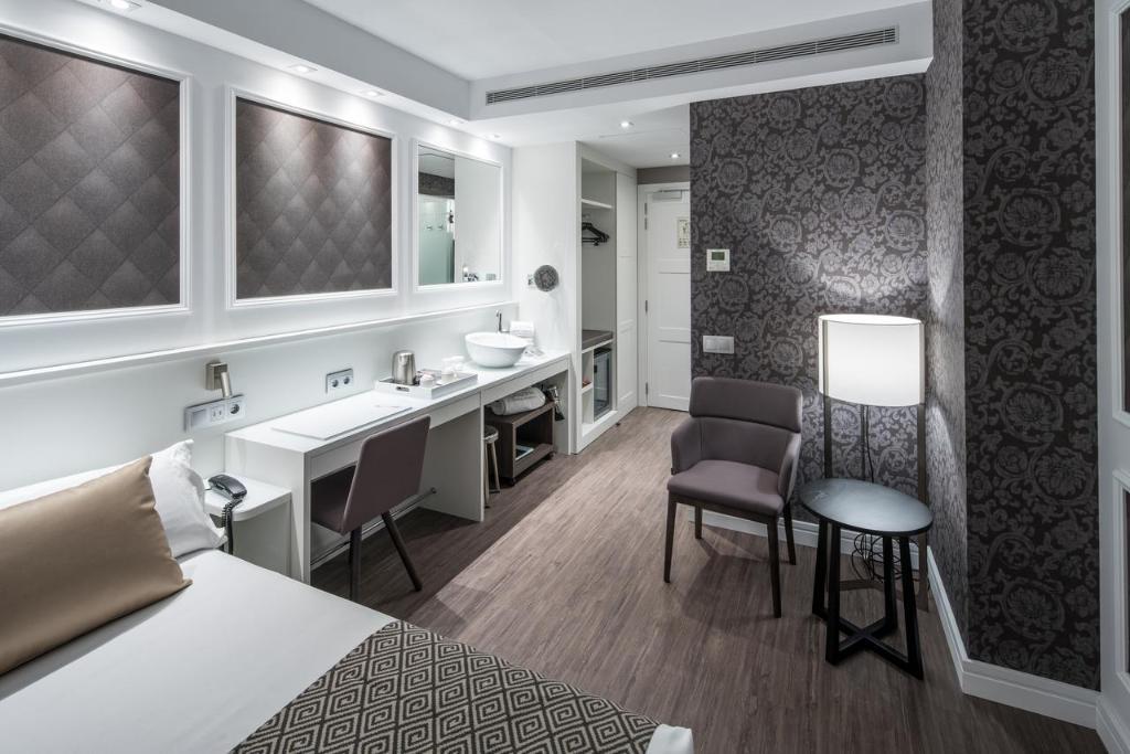 Overview\nCatalonia Magdalenes is a 4 star property located in the heart of Barcelona offering comfortable accommodation for travelers. Among its amenities the property features air conditioning in all public areas, gym and fitness center, spa, bar, 24-hour front desk, luggage storage and an outdoor pool. Guests can relax at the hotel's sun terrace and enjoy the Wi-Fi internet connection available throughout the property. \n\nLocation\nLocated in the heart of the city, in the Barrio Gotico district, the property is close to Barcelona's main attractions and to the beach. Portal de l'Angel and the Cathedral of Barcelona are also within easy reach, located just 200 m from the hotel. The nearest airport is the Barcelona El Prat Airport, located 13 km from the property. \n\nRooms\nAll rooms at the Catalonia Magdalenes feature modern decor and modern facilities such as air conditioning, telephone, soundproof windows, flat screen television, room service and a private bathroom with hairdryer and shower or bathtub. \n\nFood and Drink\nThe property does not feature a restaurant only a bar with light snacks. Guests will find numerous dining possibilities nearby the hotel.