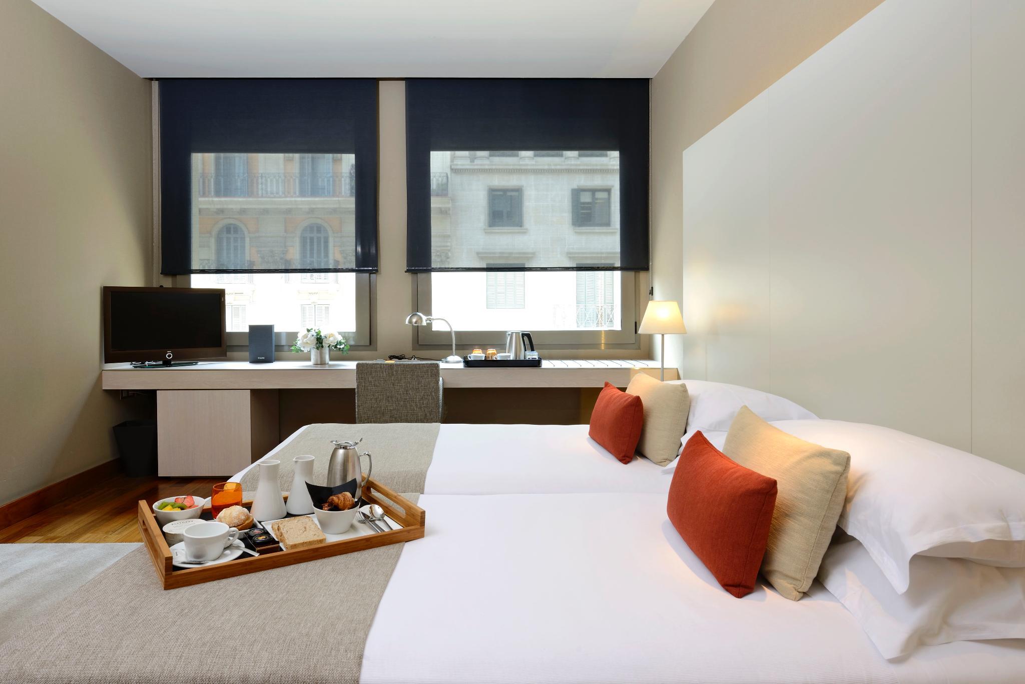 This city hotel, housed in an elegant building which dates back to 1926, is situated on the famous Via Laietana road, and very close to the gothic quarter and historic part of the city. Within the area, guests will be able to visit numerous sites of historic and touristic interest, such as the Cathedral and Las Ramblas. The Grand Hotel Central stands out for its optimal location , infinity pool, skybar and rooftop with spectacular city views and it's City Bar & Restaurant with Mediterranean cuisine. Guests will also be able to reach the centric shopping district with its numerous bars, cafes and restaurants within a short stroll.