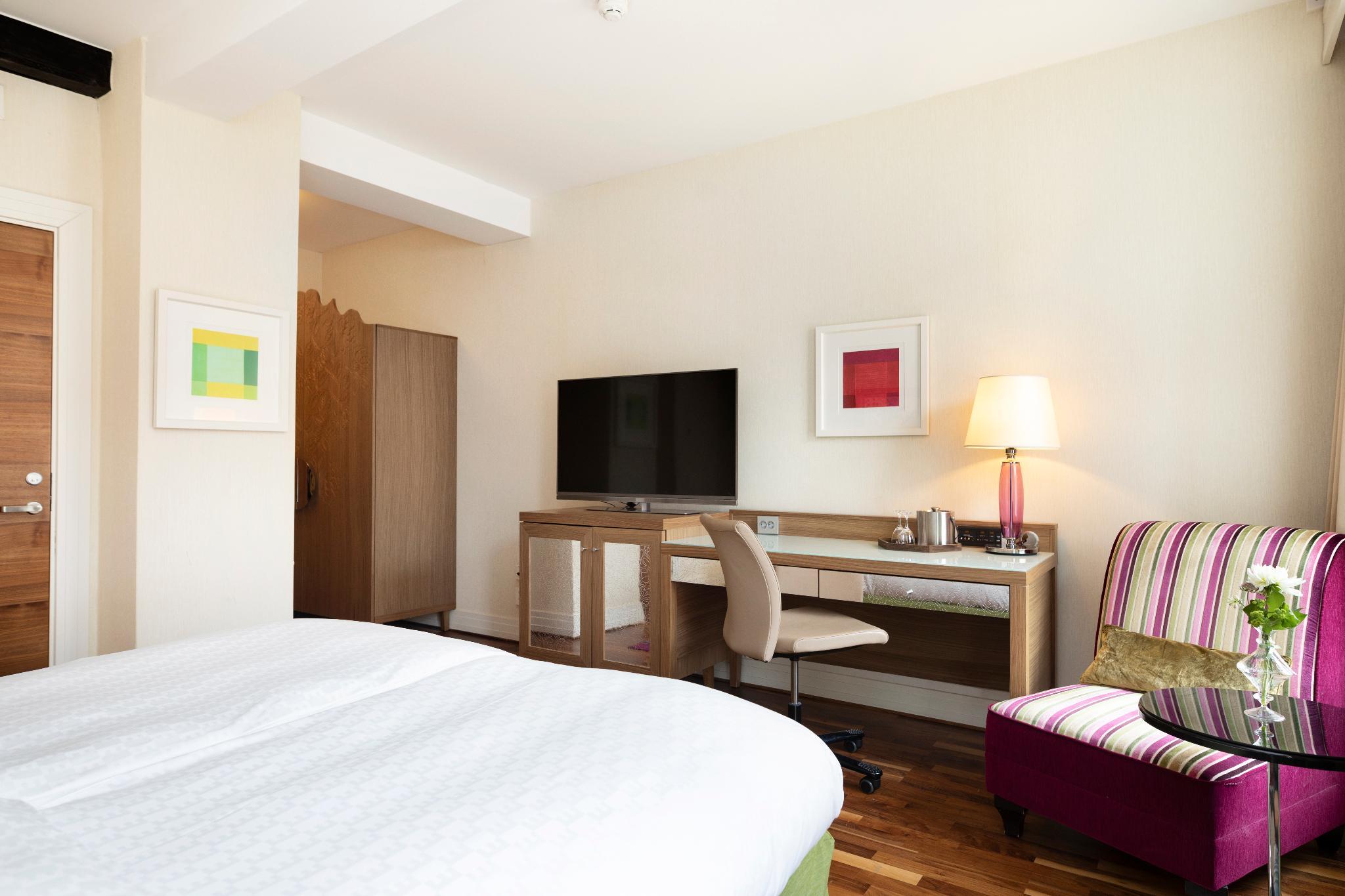 The contemporary style hotel is located in the centre of Malmo, close to Lilla Torg Square and within walking distance to Slottsparken Park with Malmohus Castle. The central train station is within 5 minutes on foot, offering a direct connection to Copenhagen International Airport (about 34 km). Malmo Airport is about 30 km away. The smoke-free hotel has 24-hour reception, express check-in and check-out, concierge service, free WIFI throughout, meeting rooms, business centre, 3 restaurants, fitness centre, laundry service and on-site parking (charges apply). Facilities for disabled guests.