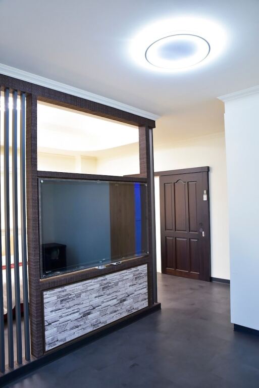 The room is warmly decorated and has everything you need to have a rest after a long eventful day. There is a TV and slippers. The room equipment depends on its category.