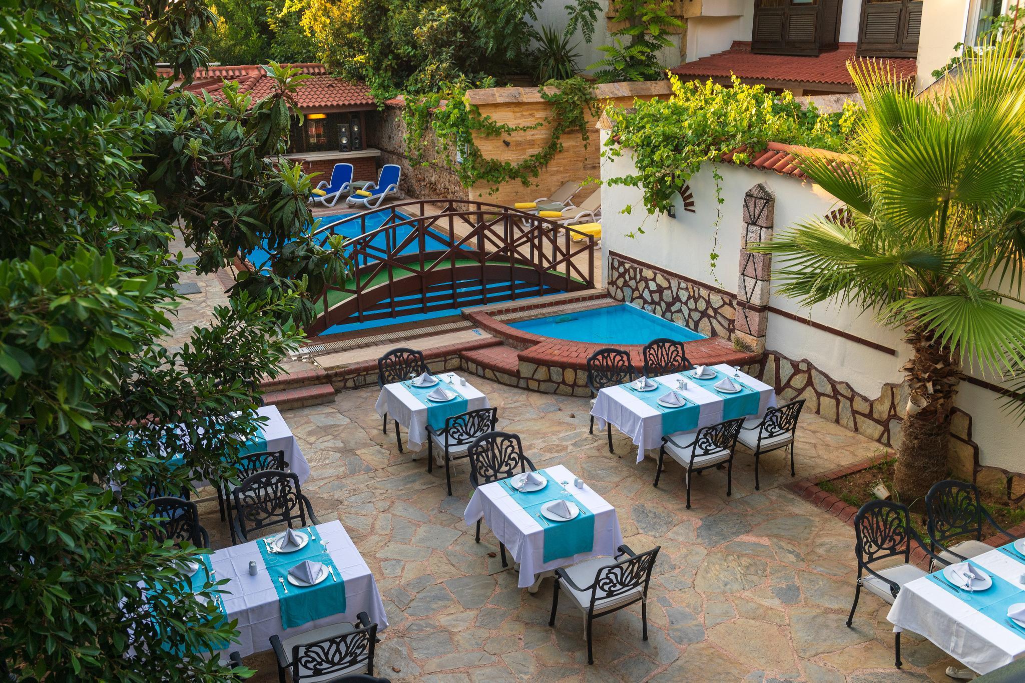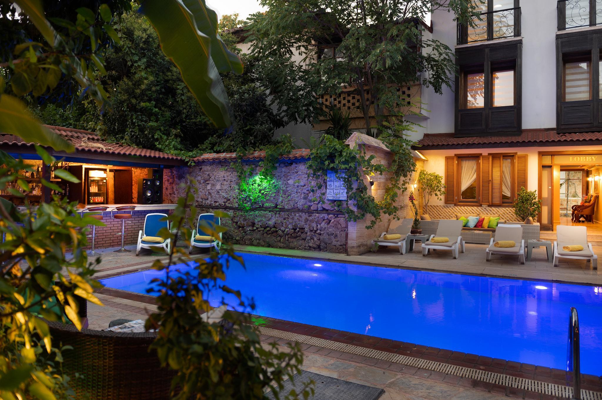 This hotel is located in the centre of Antalya's old city, Kaleici. The hotel is situated just a 5 minutes' walking distance away from the Roman ruins of Hadrian's Gate. The old harbour and small, rocky Mermrli Beach are just a 7 minutes' walking distance away. The city's main shopping street is 500 metres from the hotel. Antalya Airport is 14 km away. The hotel is beautifully designed, showcasing a traditional, authentic style. The guest rooms are charmingly styled, exuding rustic elegance. Guests can sit back and unwind in the walled garden, where orange trees add to the natural beauty of the surroundings, or enjoy a leisurely swim in the outdoor pool.