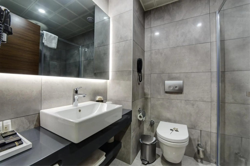 In the room, for you, there is a shower, a TV, a mini-bar and slippers. Please note that the listed services may not be available in all the rooms.