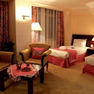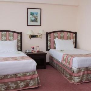 The Uzbekistan Hotel offers accommodation in 278 rooms, including 146 rooms with balconies. In-room amenities include: telephones, hair-dryers, individual climate control, shower cabins, minibars, satellite TV, and alarm-clocks. Breakfast is served for guests every morning. Non-smoking rooms and one room for disabled guests are available.