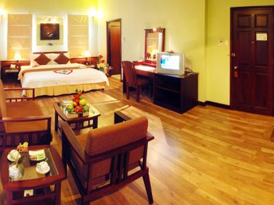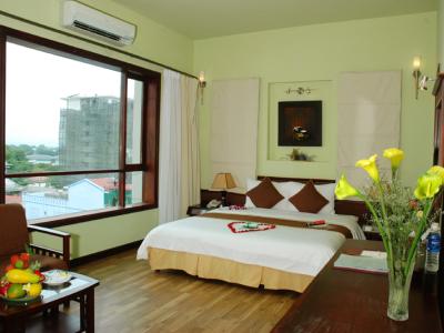 This 3 star hotel is located in the city centre of Hue. The Hotel has a coffee shop and an outdoor swimming pool. All 60 rooms are equipped with minibar, hairdryer, safe and air conditioning.