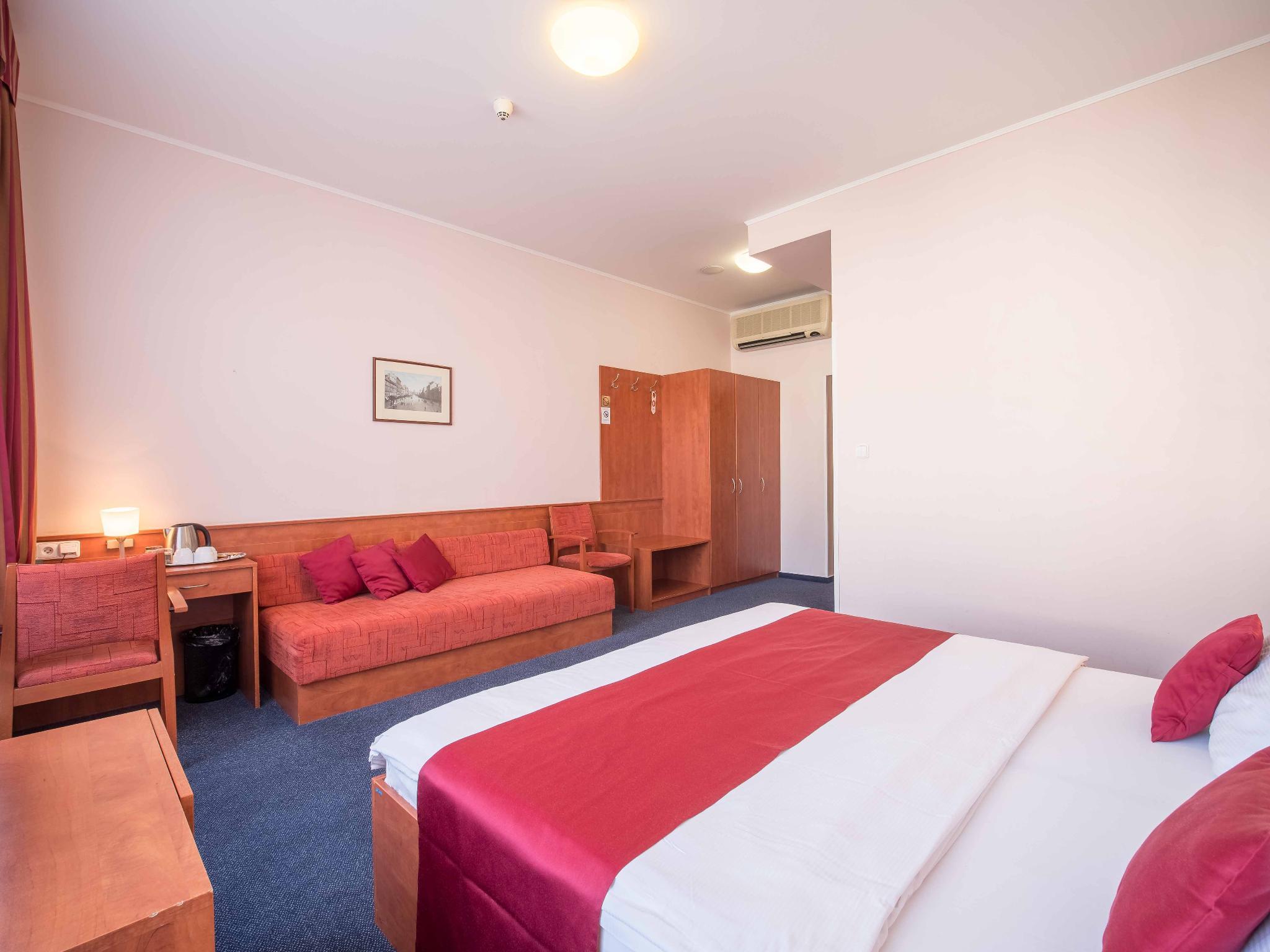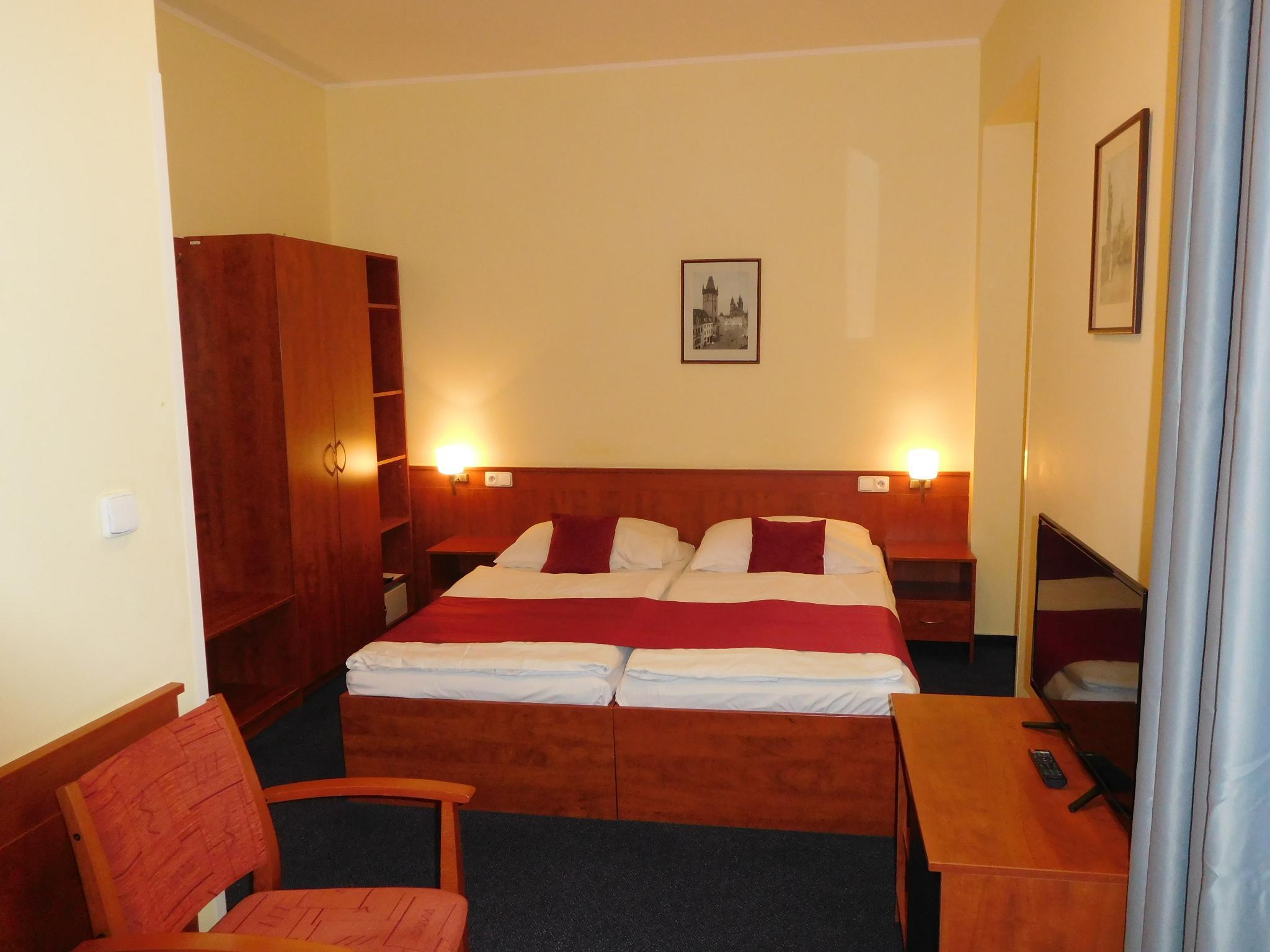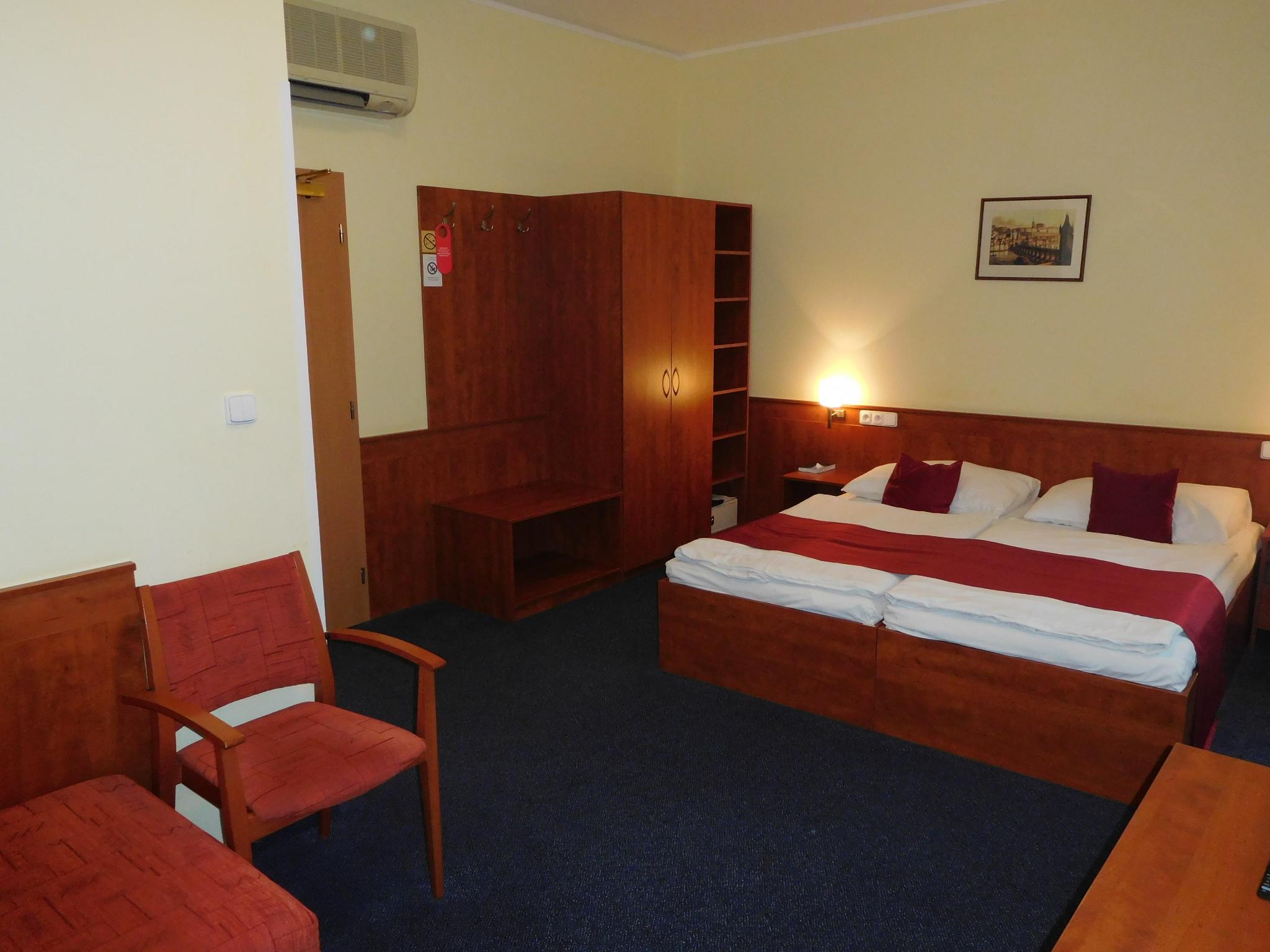 Hotel BERANEK is located in downtown of Prague, approximately only three minutes from Wenceslas Square. In front of the Hotel building are the metro and tram stops with connections all to outlying areas.The hotel offers 80 rooms, individual Air Conditioned with full private bath. All rooms are equipped with free high speed Internernet WiFi, TV, SAT, Telephone, Hairdryer, Refrigerator and Safe. Parking is available in the underground garage and direct in the front of the door, fitting also for two busses. Breakfast we are serving in buffet style with a large variety and in room price included. One room is specially equipped for physically disabled persons.Free internet connection with a speed of 4 Mbps is available in each room, as well as the wireless WiFi network.