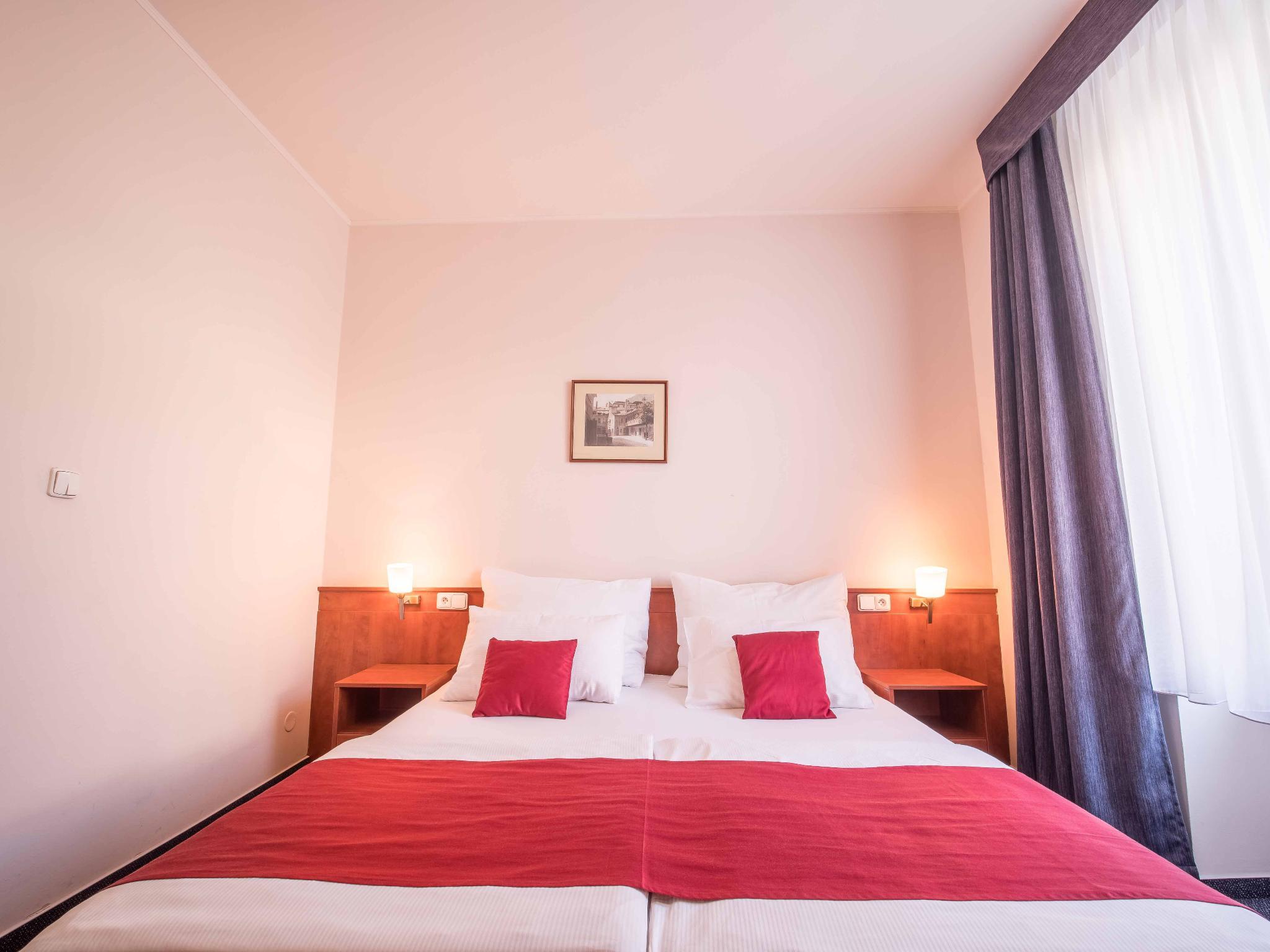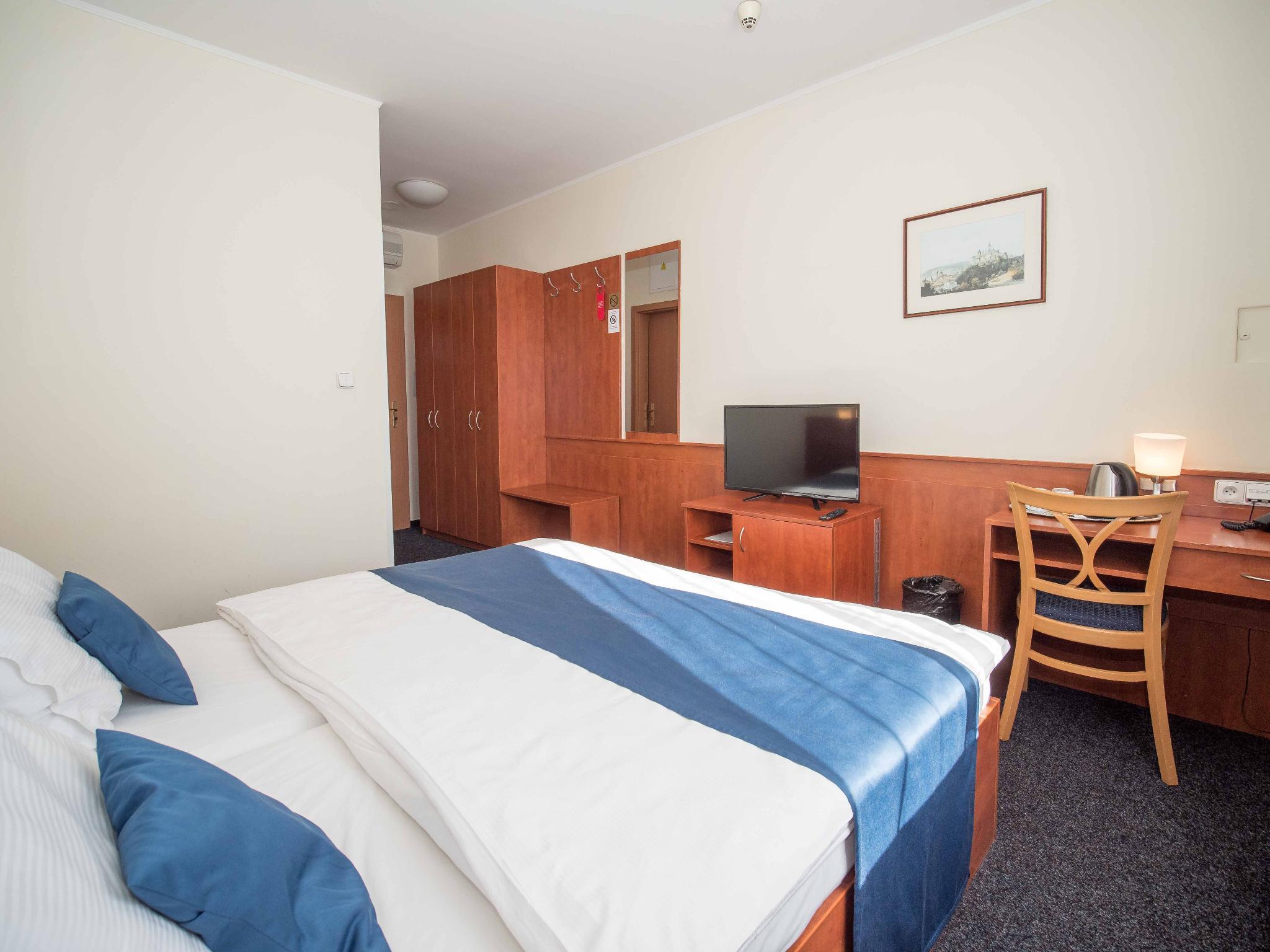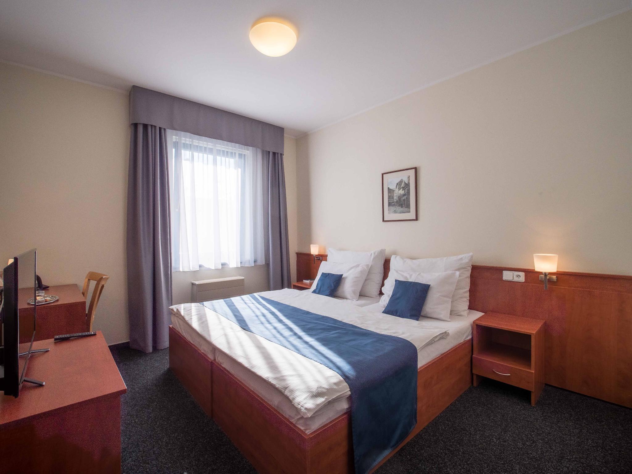 Hotel BERANEK is located in downtown of Prague, approximately only three minutes from Wenceslas Square. In front of the Hotel building are the metro and tram stops with connections all to outlying areas.The hotel offers 80 rooms, individual Air Conditioned with full private bath. All rooms are equipped with free high speed Internernet WiFi, TV, SAT, Telephone, Hairdryer, Refrigerator and Safe. Parking is available in the underground garage and direct in the front of the door, fitting also for two busses. Breakfast we are serving in buffet style with a large variety and in room price included. One room is specially equipped for physically disabled persons.Free internet connection with a speed of 4 Mbps is available in each room, as well as the wireless WiFi network.