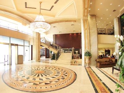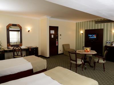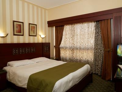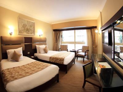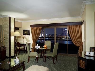 This 5 star hotel is located in the city centre of Cairo and was established in 1994. It is a short drive away from the Egyptian Museum and the nearest station is Dow Town. The Hotel has 4 restaurants, 3 bars, a conference room, a coffee shop, an outdoor swimming pool and a fitness centre/gym. All 377 rooms are equipped with minibar, hairdryer, safe and air conditioning.