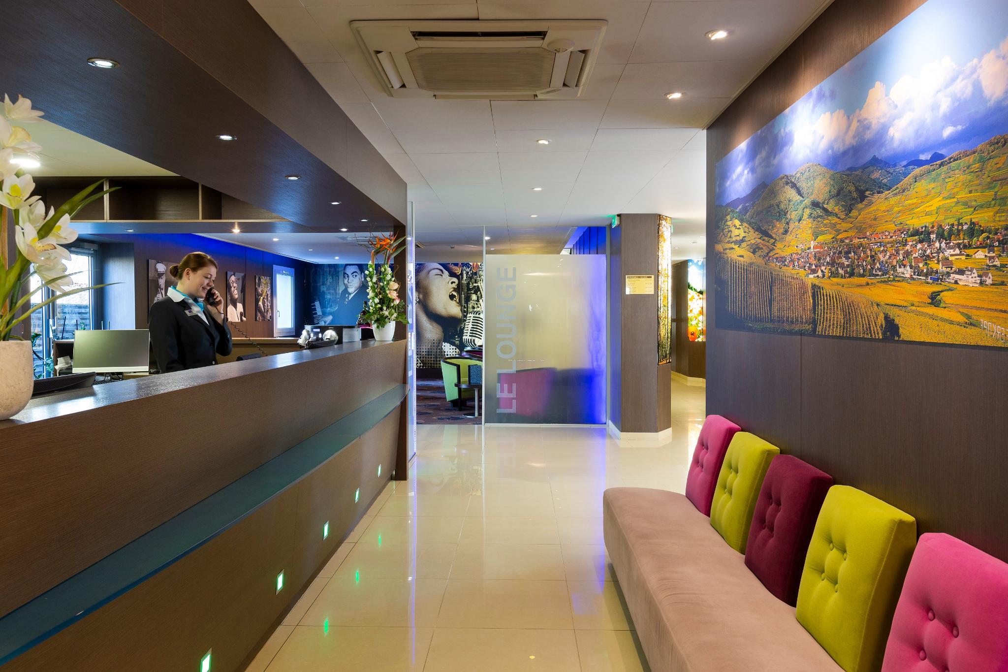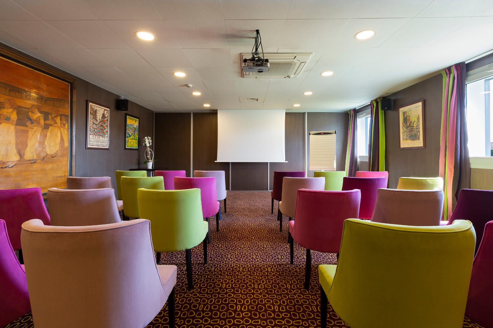 For your business stays, the hotel is in the heart of Colmar business centers, in front of the exhibition center and the airport. For your meetings, and conferences, the hotel provides a 60 m meeting room. Discover areas in warm, colored and sophisticated design: 99 air-conditioned rooms (from single to family room or adapted to the people with reduced mobility); breakfast room; lounge bar ...