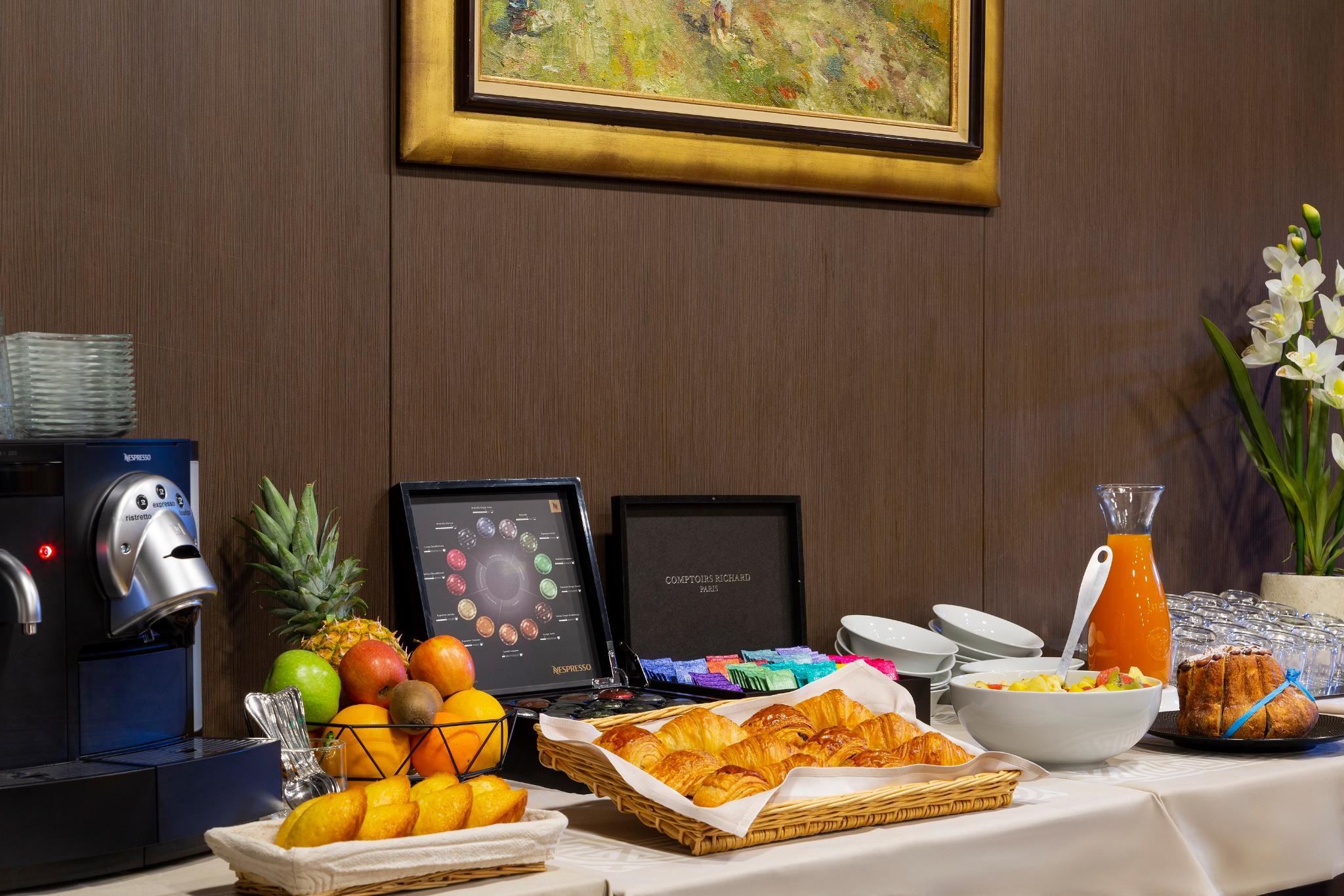 Enjoy services of quality at just and fair price : free Wi-Fi, Nespresso coffee machine in rooms, sweet and salty buffet breakfast, free car park, closed and secure bike shed.