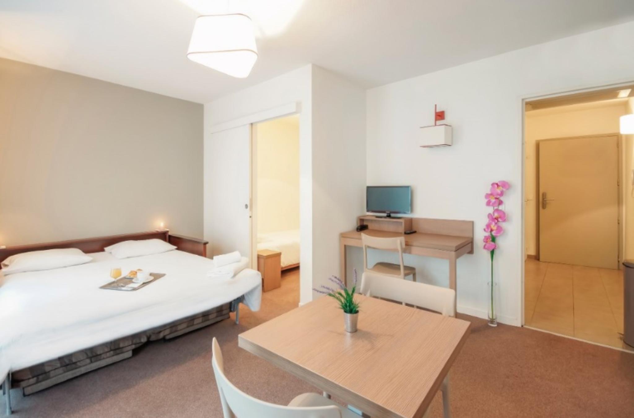 Boasting a strategic position in Valence's town centre, in the Drome department in southeastern France, this pleasant and cosy aparthotel is the ideal choice of accommodation for business and leisure travellers who visit this beautiful French region. The property is a 2-minute walk from the railway station and surrounded by numerous dining and shopping options. Guests will be able to completely relax at the simply but comfortably equipped studios and apartments that count with all the necessary amenities for a memorable stay, including air-conditioning and a fully equipped kitchen for visitors to prepare their own meals. The property offers early check-in and late check-out services for added comfort, as well as a delicious continental breakfast buffet every morning.