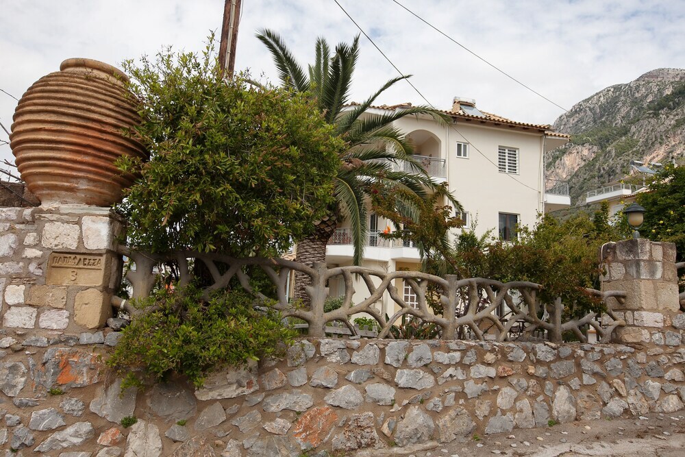 Точные координаты отеля для навигатора: 37.003113,22.156752.