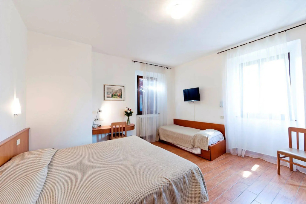 В отеле Quarcino вы можете забронировать один из 13 комфортабельных номеров, оснащенных кондиционером, спутниковым телевизором и феном. В каждом номере есть собственная ванная комната и балкон. По запросу может быть установлена детская кроватка.