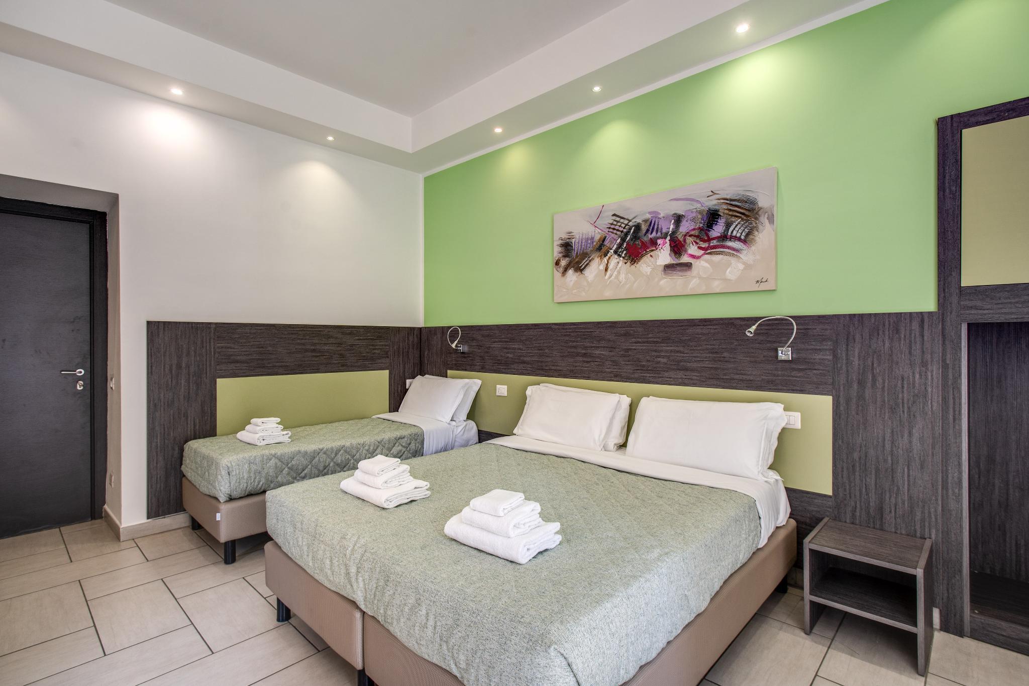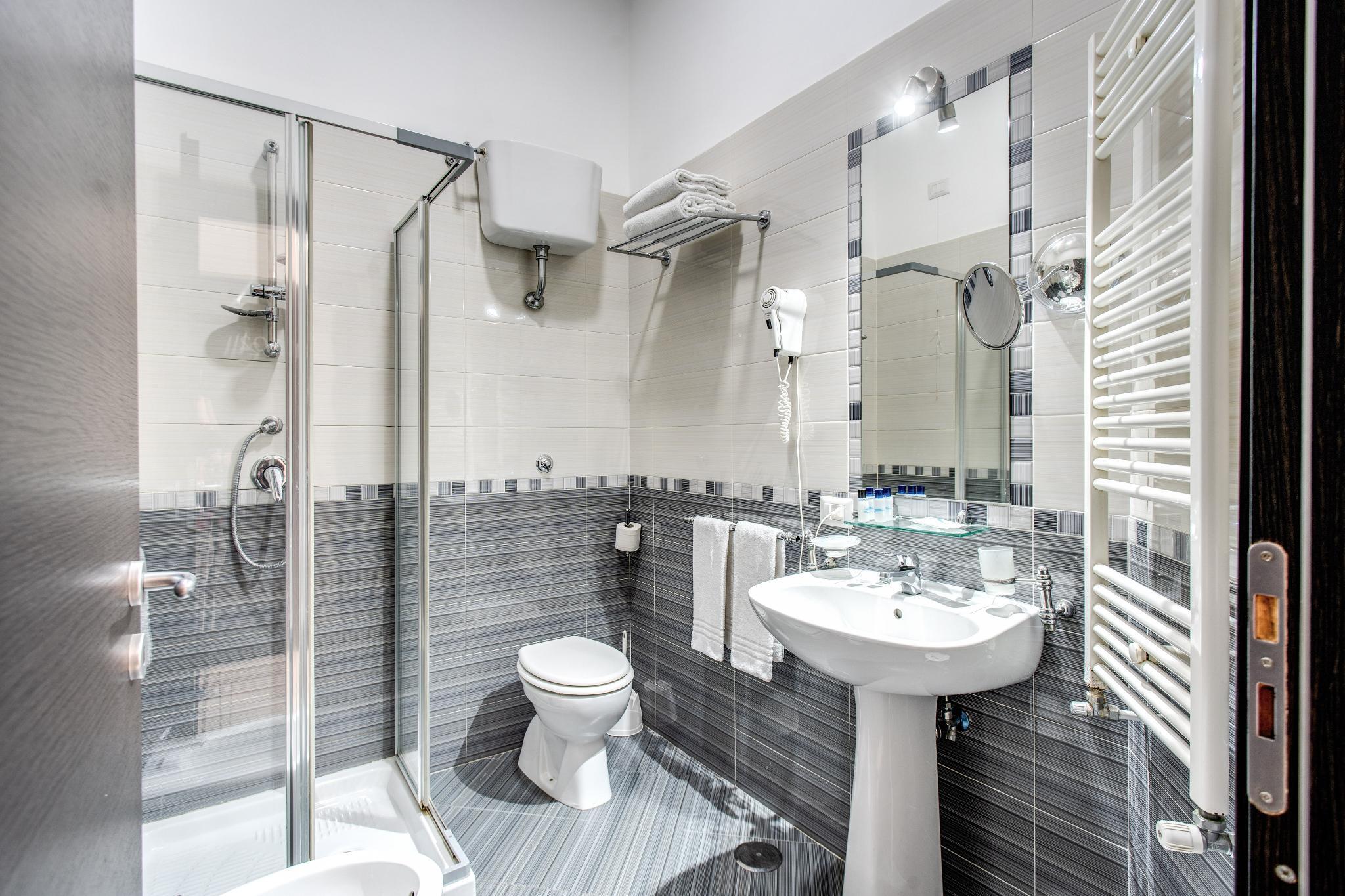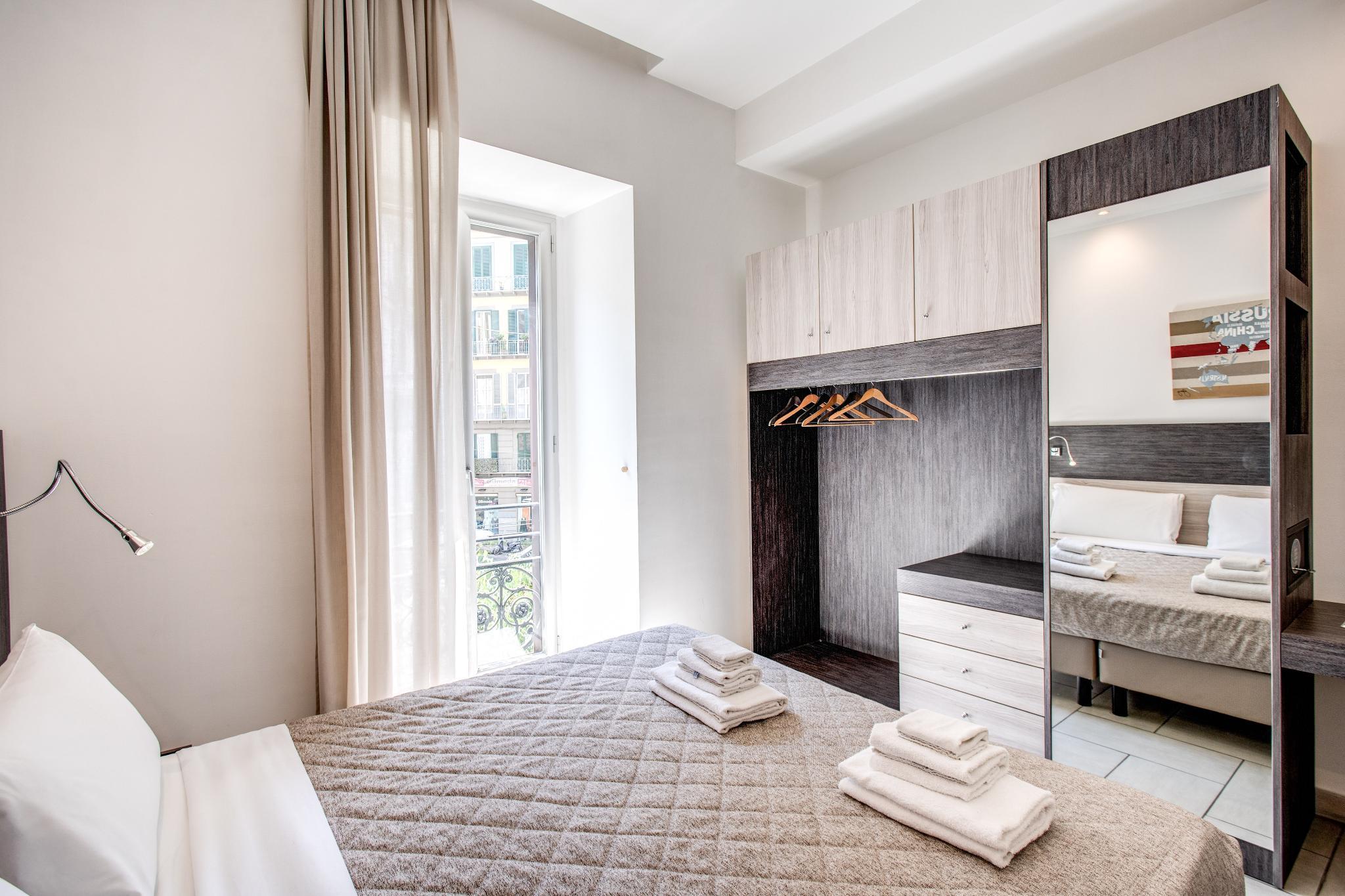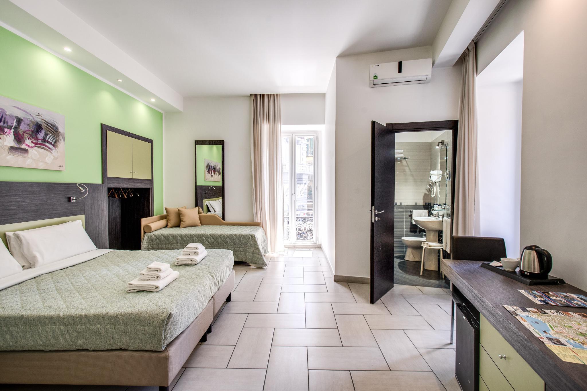 In Corso Umberto, in the magic atmosphere of this famous Italian city. This suite is on first floor of a prestigious building of early 20th century and has been equipped with modern comforts such as the elevator and an in-house bar. The building has been renovated and the seven rooms are decorated with modern and stylish furniture, in pure Italian style. The hotel elevator will take you directly to the hotel reception. Our staff, experienced, professional and friendly, will be happy to welcome you to Naples and make your stay unforgettable. The rooms have private bathroom and some of them have a bath tub. They are functional and relaxing, with sophisticated color matches that make the atmosphere unique and pleasant.