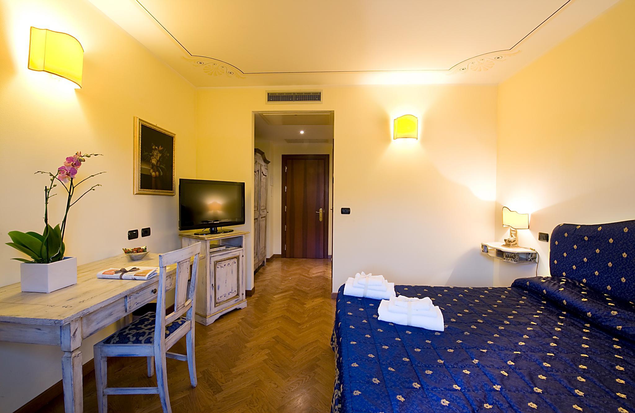 The hotel has 32 rooms, 2 of which can welcome the disables, elegantly furnished and with special attention to all small details.16 rooms are fitted with a hydro massage, they are all fitted with air conditioning, satellite TV, fridge, safe and direct connection to the internet.