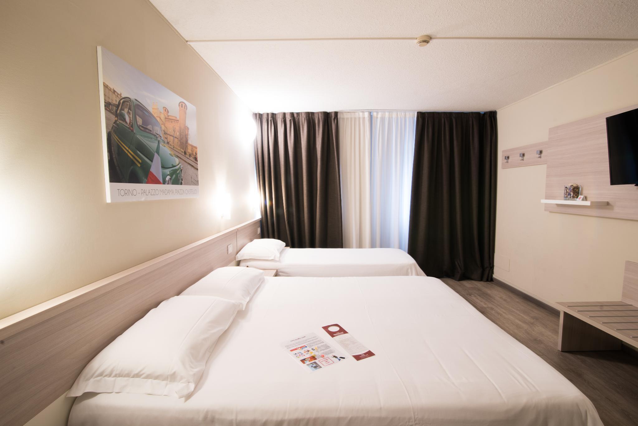 Located in the center-west of Turin, this hotel matches its absolute quietness and its nearness with Politecnico University, the Lingotto neighborhood, the stations of Porta Susa and Porta Nuova, and all the major attractions of the city center (easily accessible by public transport public). The rooms were renovated in 2015. Some rooms have a tile flooring and others wood flooring, and they are all equipped with comfort. They have a minibar, electric kettle, telephone, flat-screen TV and heating / air conditioning. Among the services offered, you will find a rich continental buffet breakfast, access to the indoor gym and wi-fi throughout the hotel. The hotel allows small pets (on request).