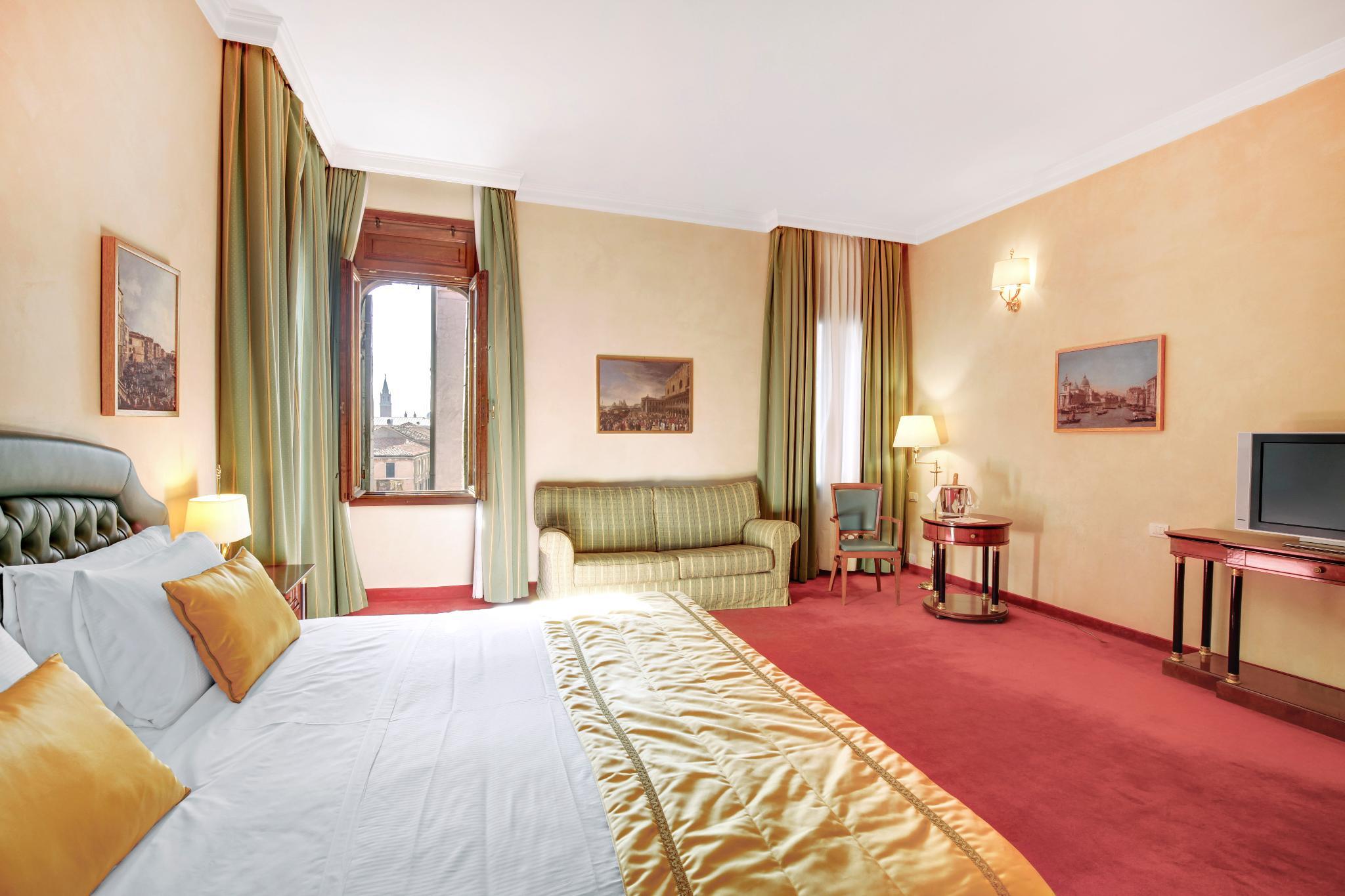 Dona Palace is a 4-star boutique hotel 2 minutes' walk from Saint Mark's Square in central Venice. Facing the Ducal Palace's canal, it offers elegant Venetian-style rooms with an LCD satellite TV, minibar and free Wi-Fi.