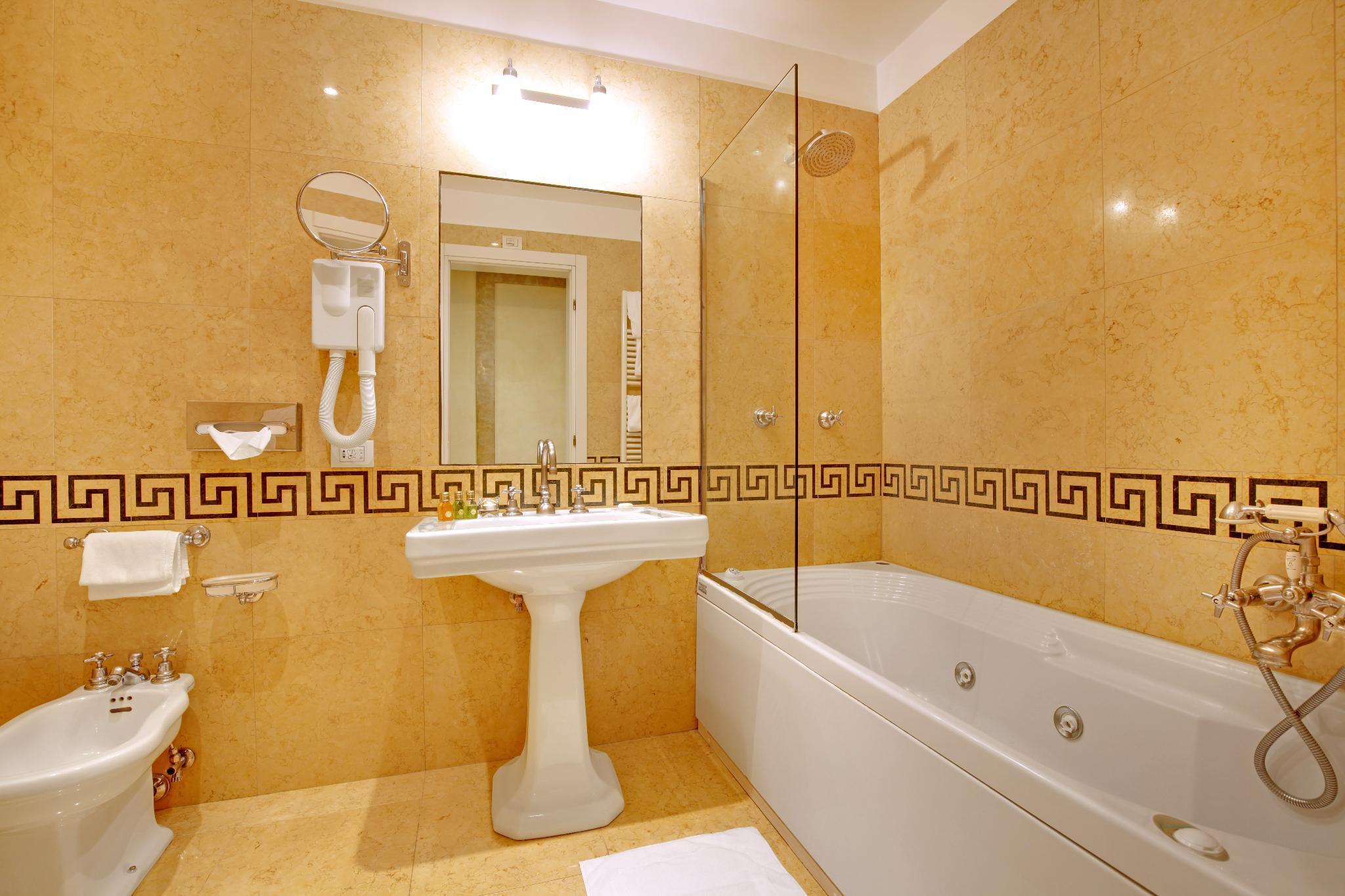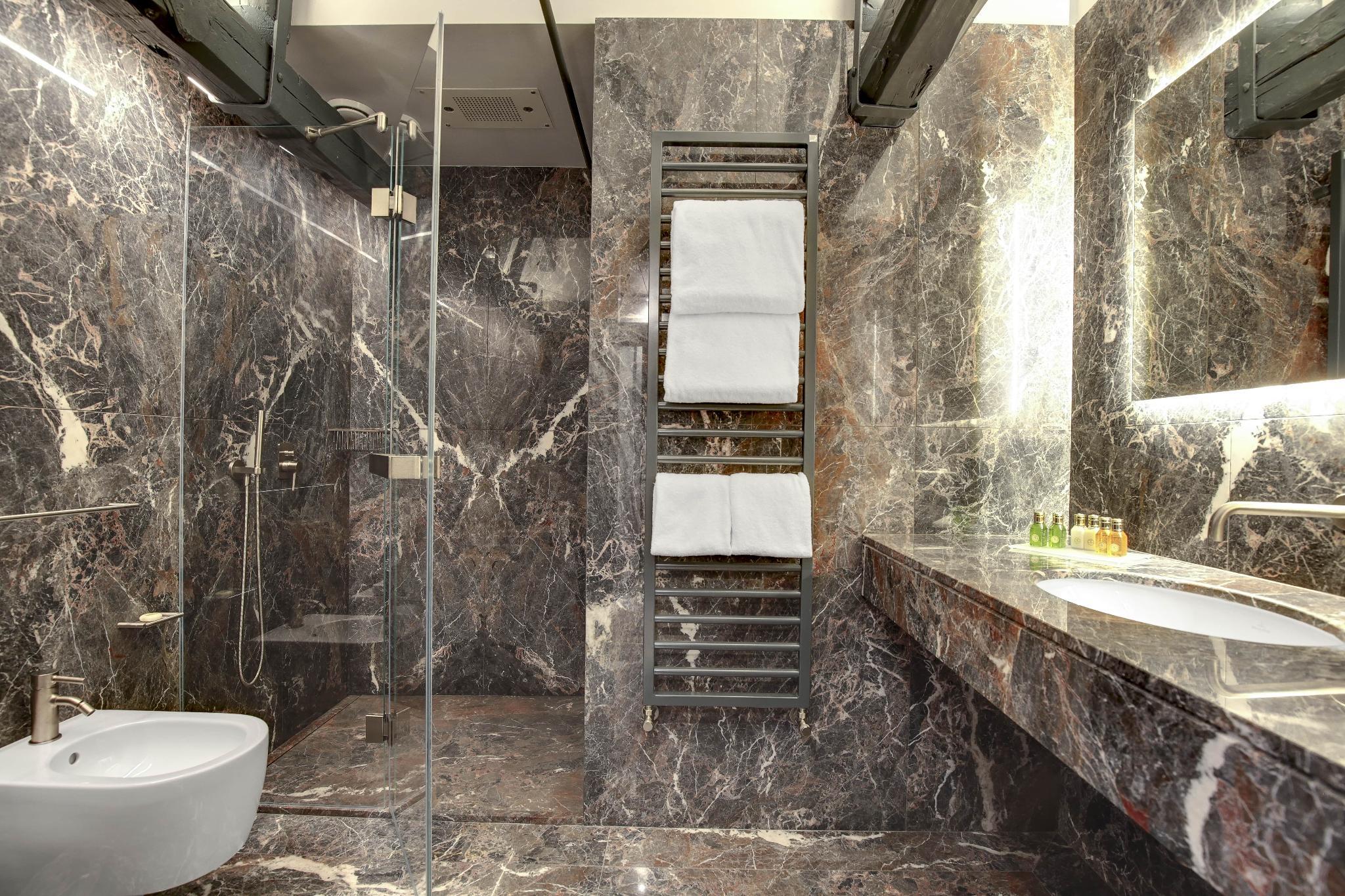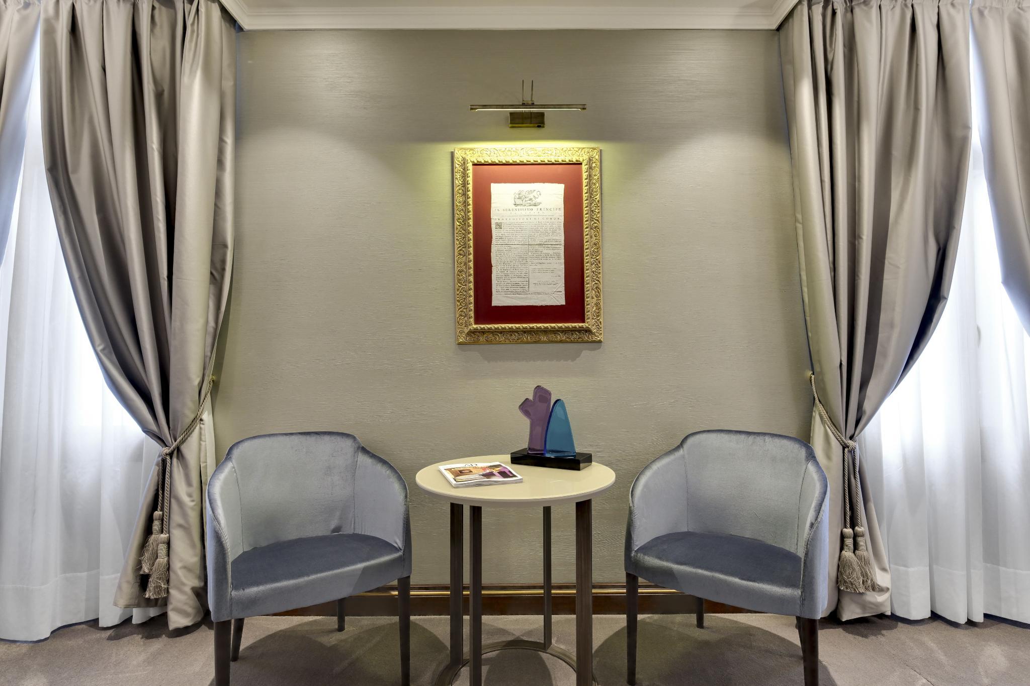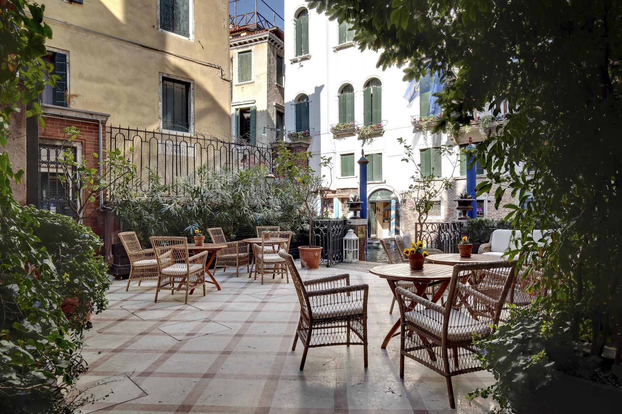 An American breakfast is served each morning. The hotel has its own internal garden, where drinks are served in summer, and a landing dock for water taxis.