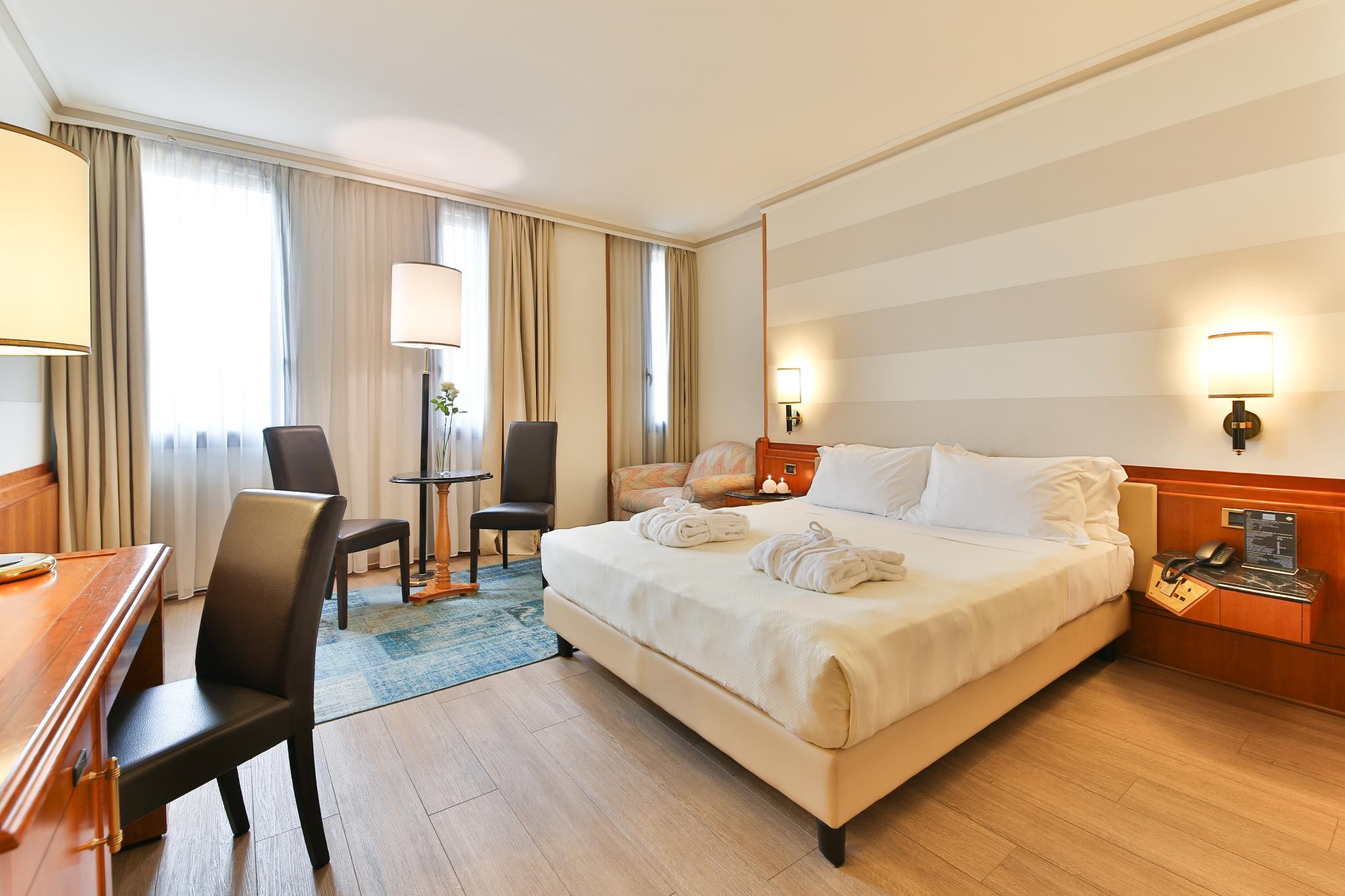 This 4 star hotel is located in the city centre of Verona and was established in 1990. It is 15 minutes walking from the Arena and the nearest station is Verona Porta Nuova. The Hotel has a restaurant, a bar and 11 conference rooms. All 190 rooms are equipped with minibar, hairdryer, safe and air conditioning.