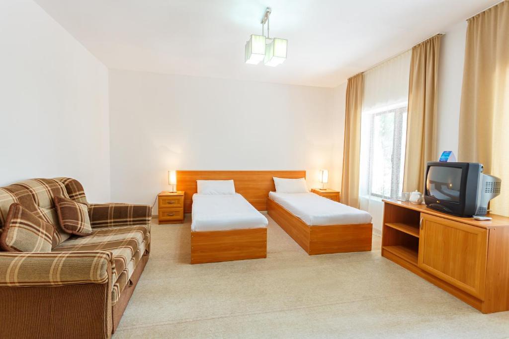 Точные координаты отеля для навигатора: 42.6366348266602,77.0481109619141.