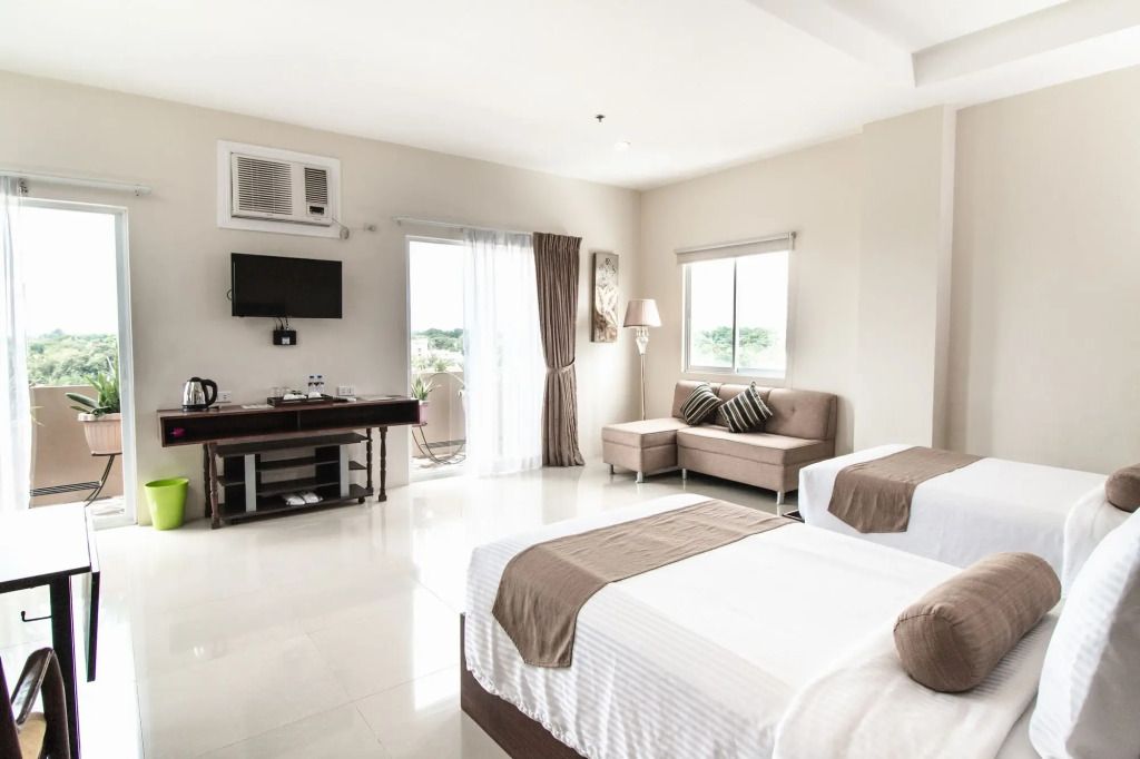 <p><b>Полезная информация</b> <br /><ul> <li>Отель предлагает трансфер от аэропорта (может взиматься дополнительная плата). Гостям необходимо сообщить о своем прибытии за 24 часа до прибытия, используя контактную информацию из письма с подтверждением бронирования. </li> </ul></p><p><b>Дополнительные платежи</b> <br /><p>Следующие платежи и залоги взимаются отелем во время оказания соответствующей услуги, при регистрации по прибытии или регистрации при отъезде. </p> <ul> <li>Плата за трансфер до аэропорта для взрослого: 500 PHP за транспортное средство (в одну сторону)</li> <li>Плата за раскладную кровать: 400 PHP за ночь</li> </ul> <p>Возможно, приведенный выше список неполон. Суммы платежей и залогов могут быть указаны без учета налога и могут быть изменены. </p></p>
