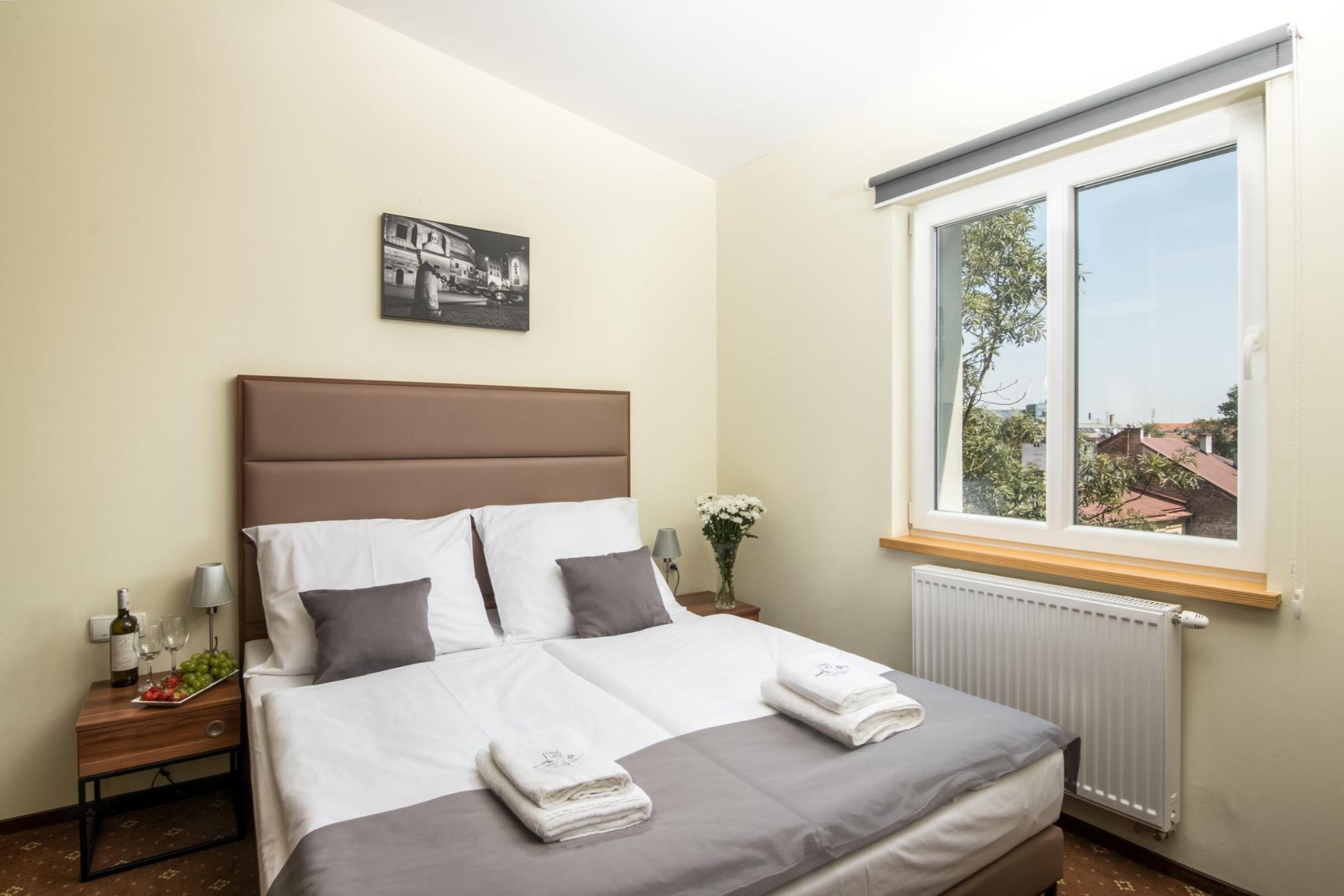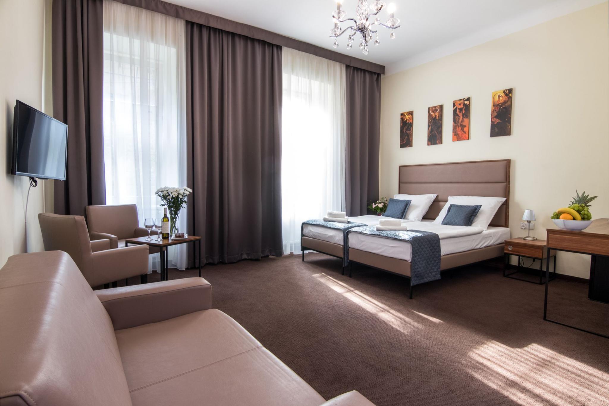 The property is located in the heart of Cracow near the Wawel Royal Castle, the Main Market Square, the Juliusz Slowacki Theatre, the Florian Gate or the Barbican. The excellent location allows guests to explore the city's main attractions without having to use any means of transportation - almost anywhere in a very short time, on foot. A wide range of restaurants and bars are to be found in the hotel's vicinity. The airport is about 15 km from the hotel. The property offers 62 fully equipped and tastefully rooms. All rooms furnished to make a stay comfortable and memorable, equipped with bathroom with shower, very comfortable twin or double beds, mini bar, TV with access to international channels and coffee facilities. Some rooms on the top floor come with air-conditioning.